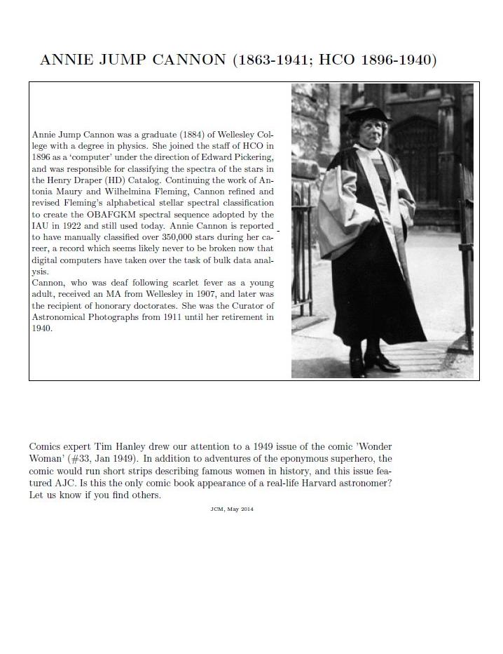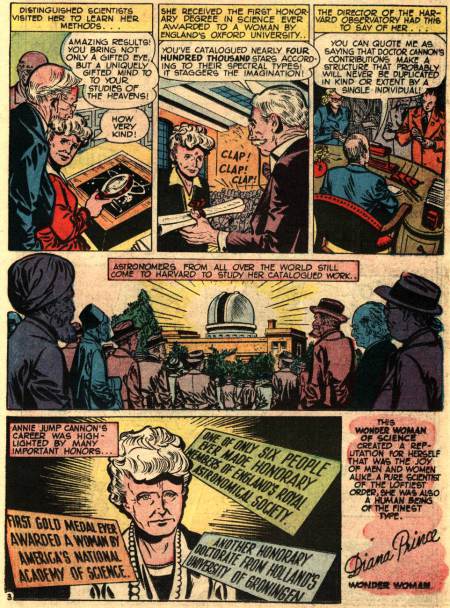 In the early issues of the Wonder Woman comic, it carried additional short stories of 'Real Wonder Women of History". In 1949, issue no. 33 featured Annie Cannon in this role:
