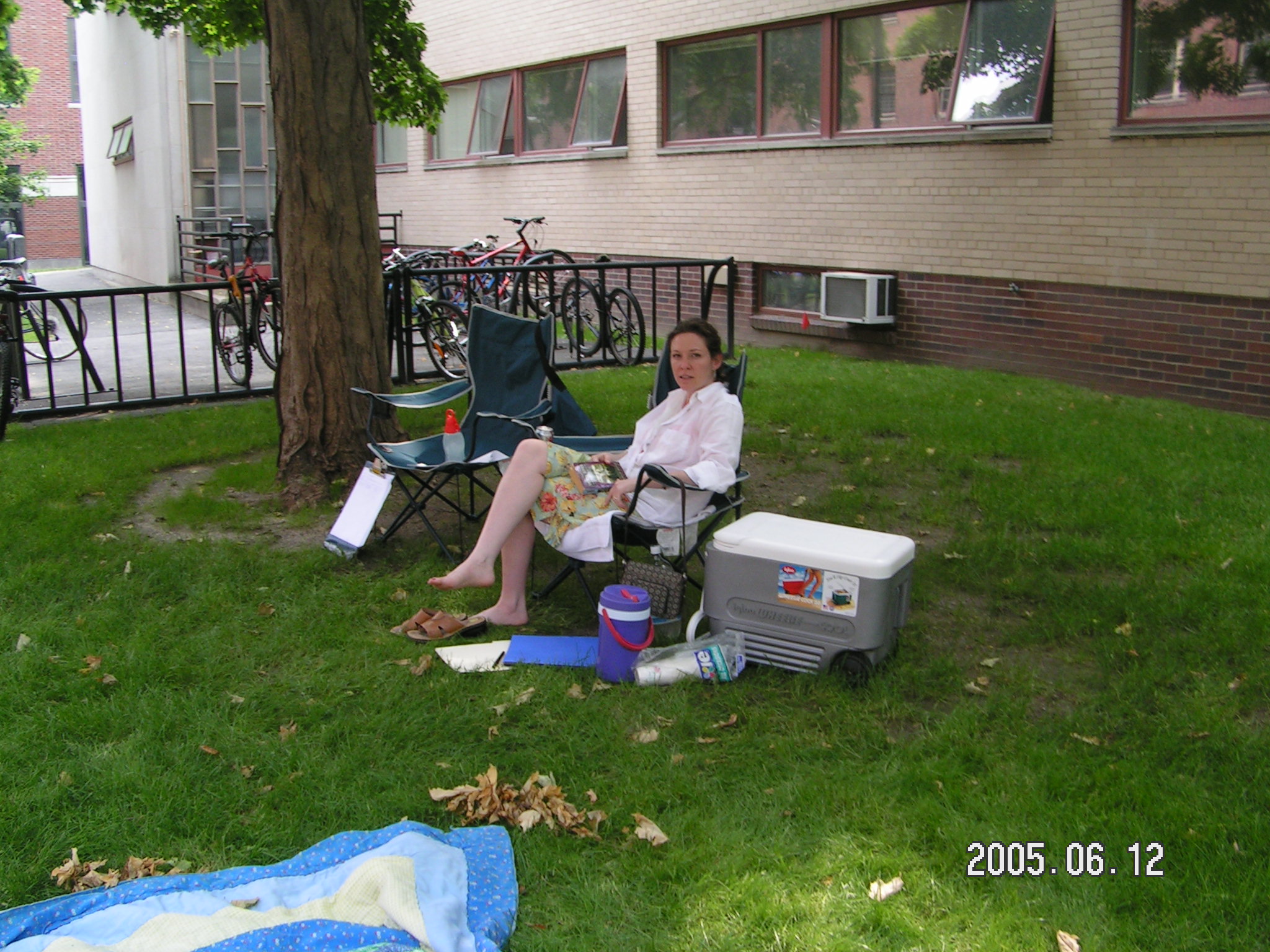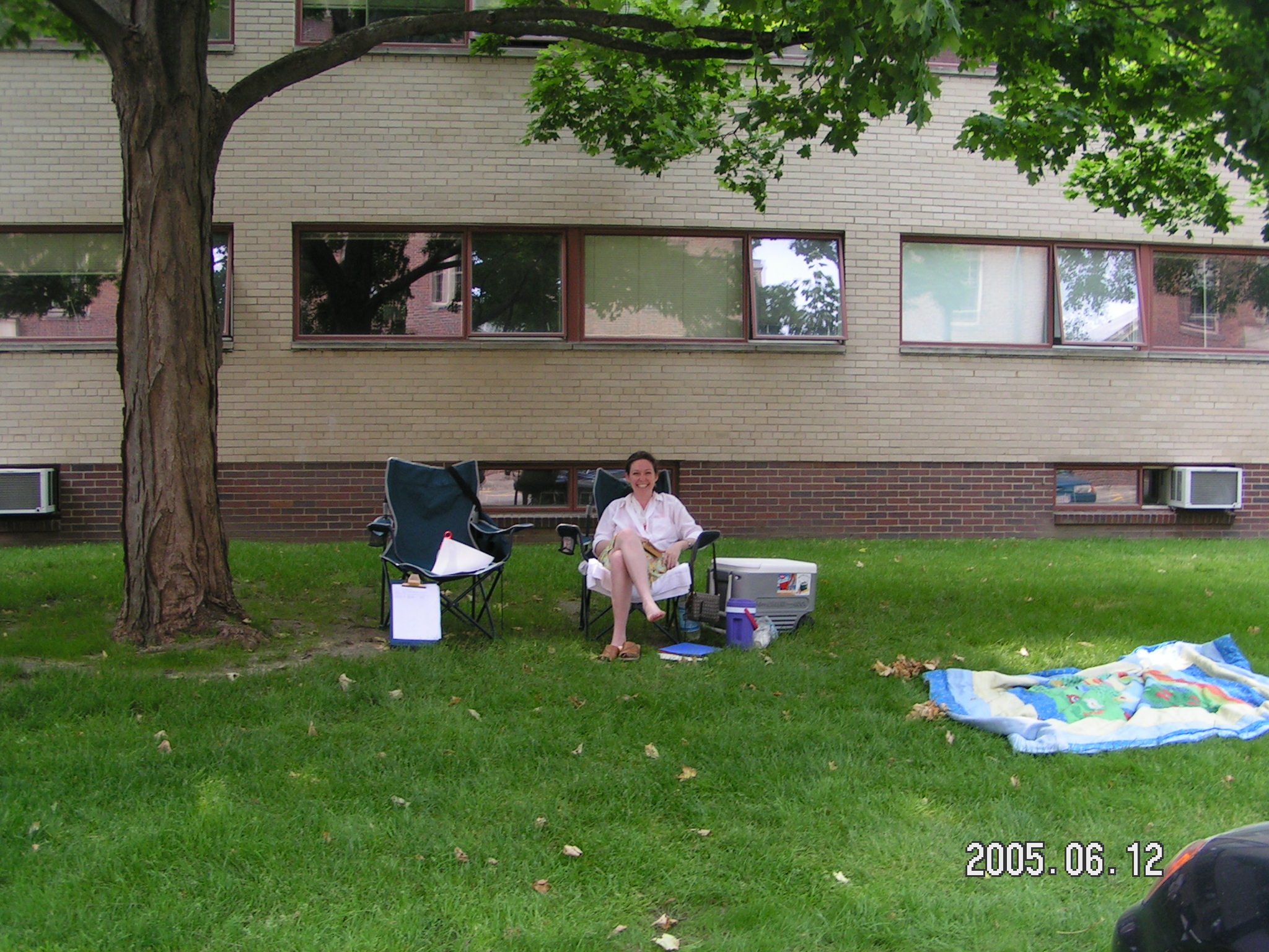 Melissa comfortably set up for the traditional lets-wait-for-the-interns picnic.