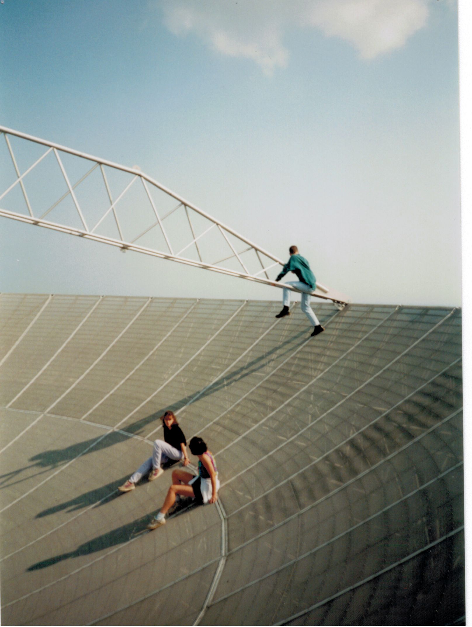 p005.jpg 1994: Kendra Michaud and maybe Lisa Falkson in a radio dish |