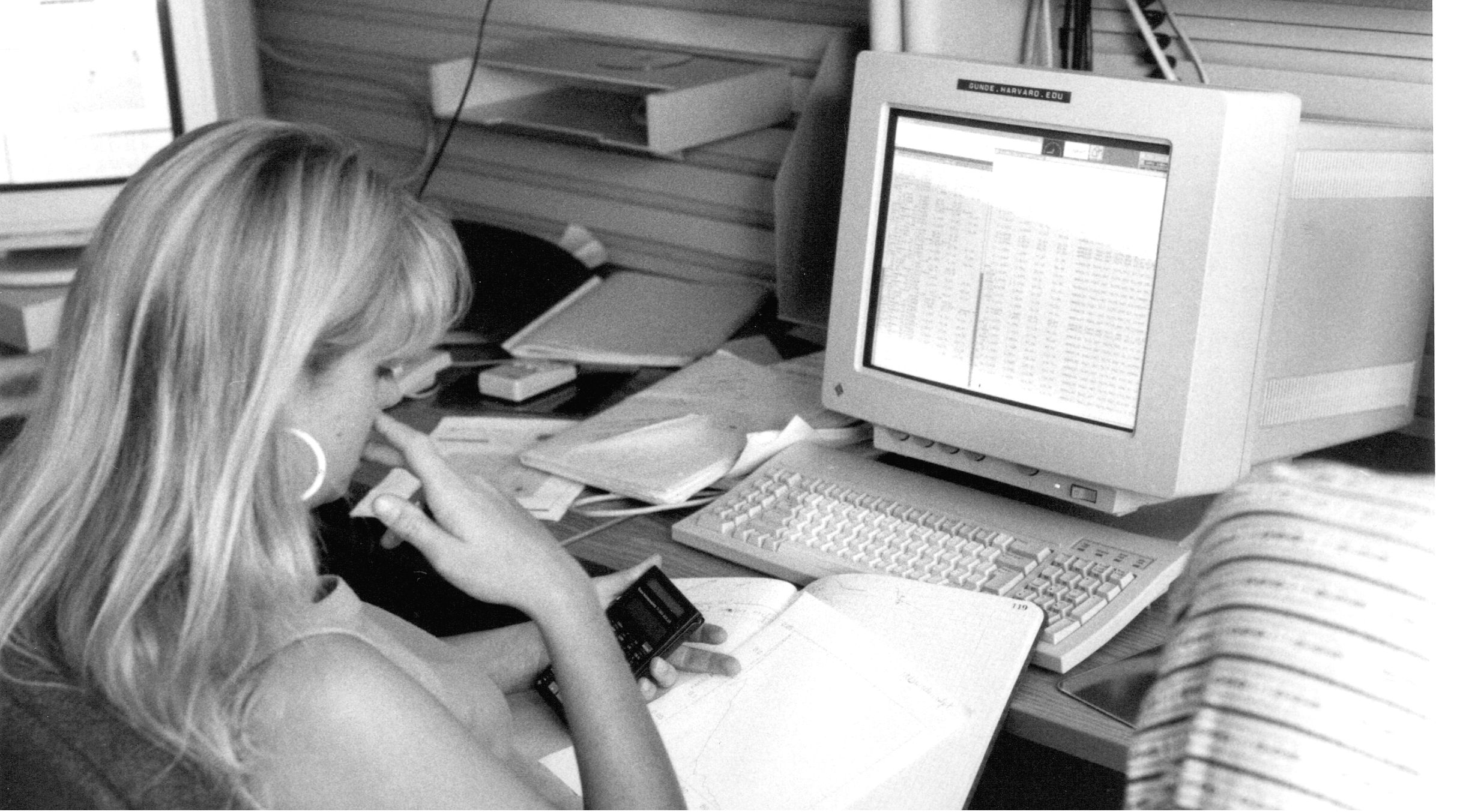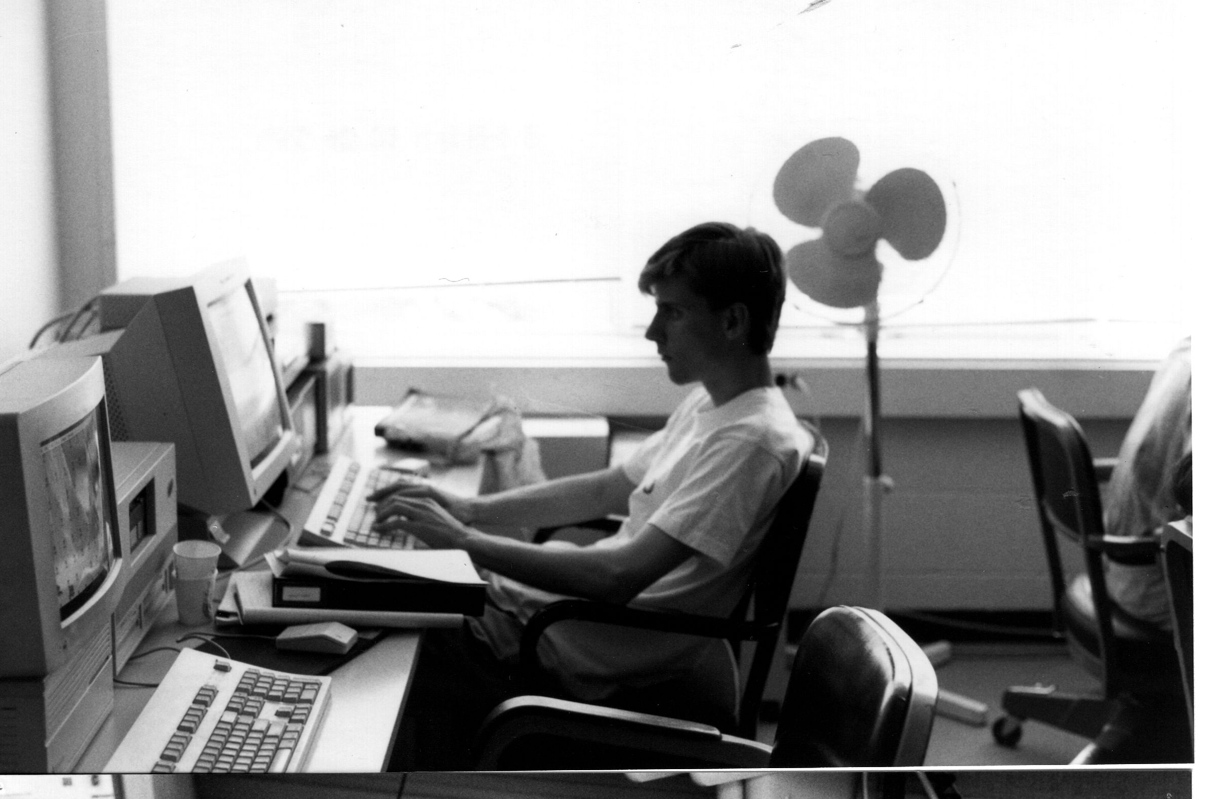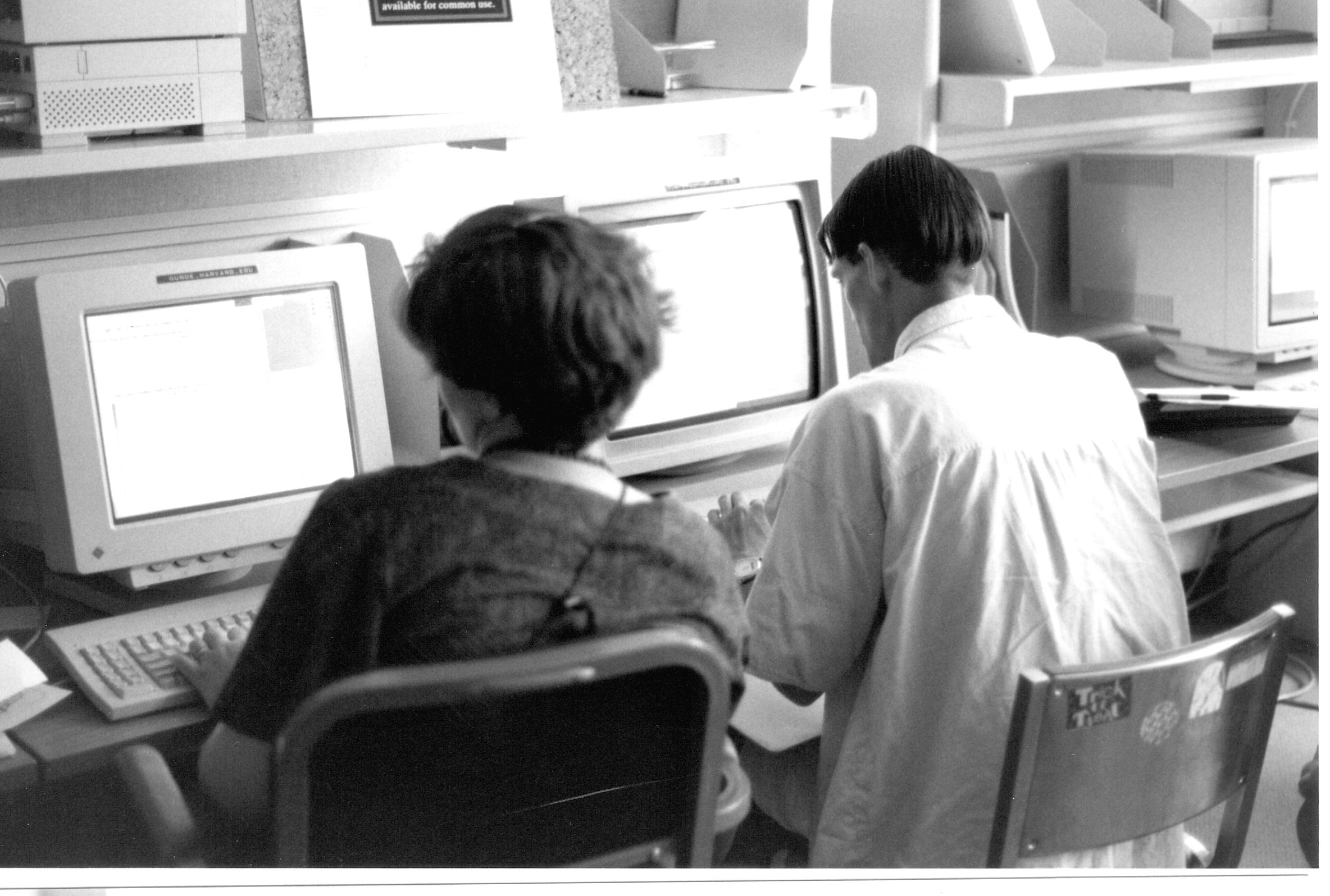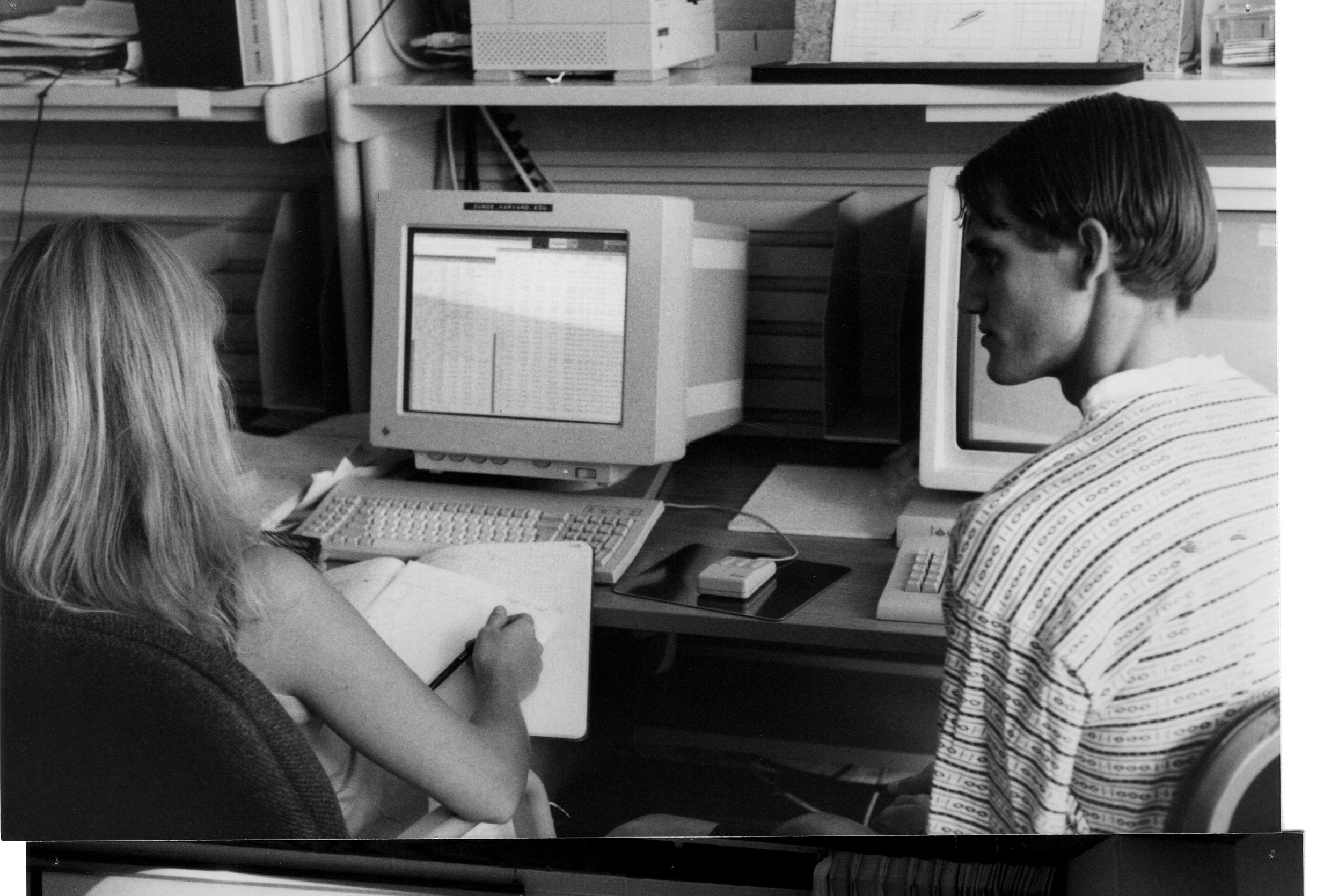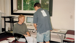 | p009.jpg 1995: Rachel Theran explains a problem to Jonathan |