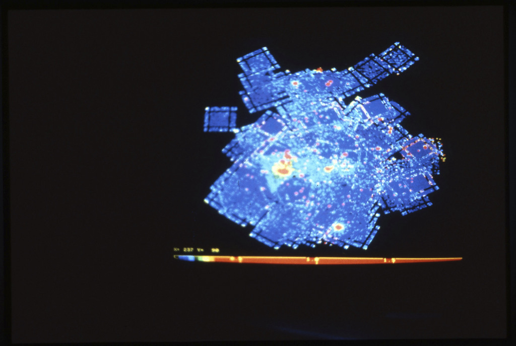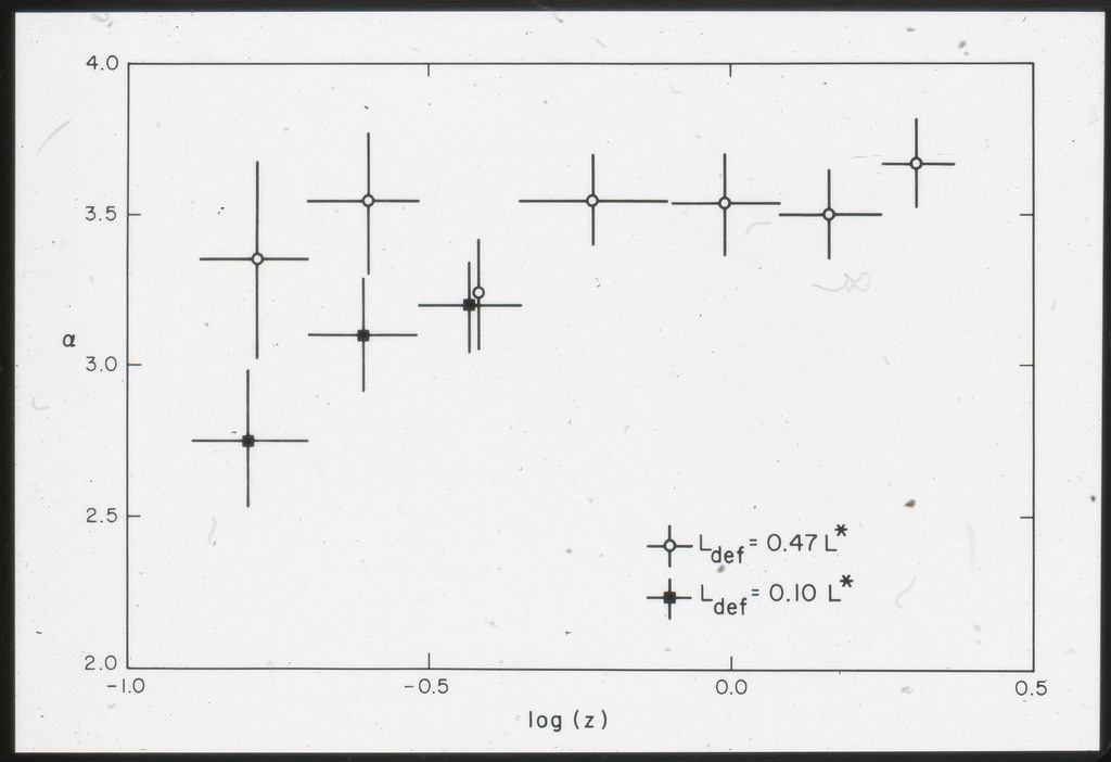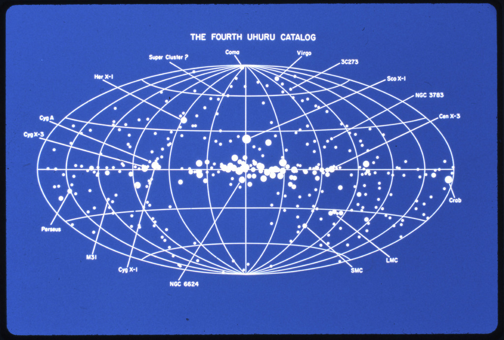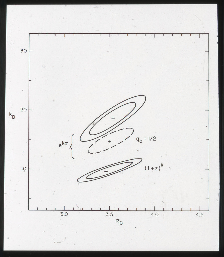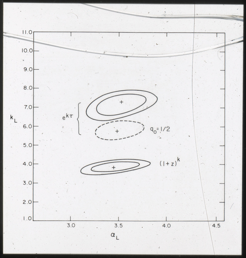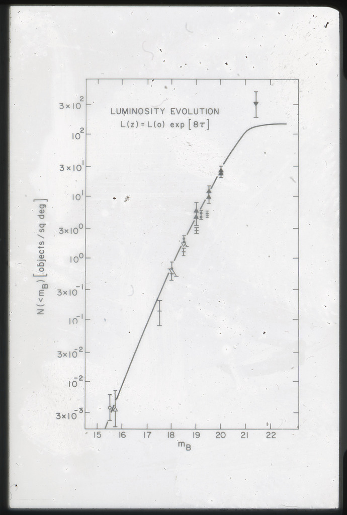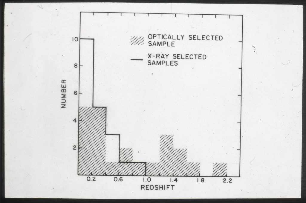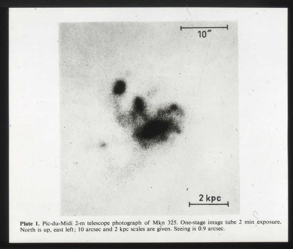 E/1003 A 1367. Optical picture of the cluster contains several hundred individual galaxies, the brightest of which are seen as the extended or fuzzy dark spots. |
