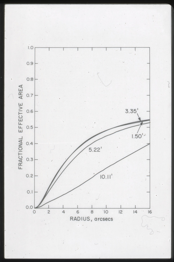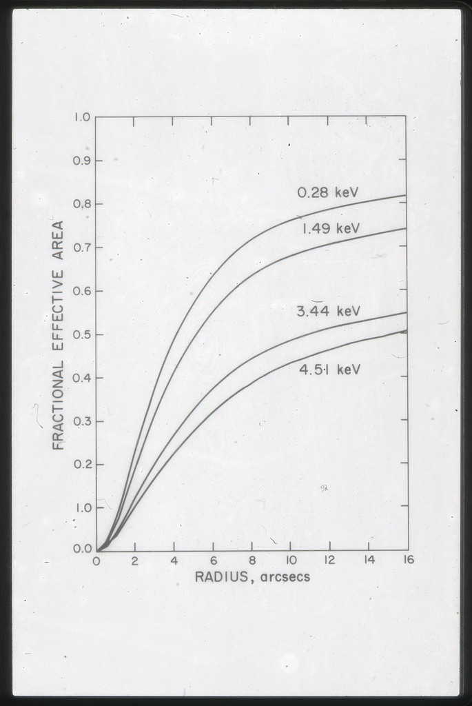 E/44 Effective area HRI ~2 with no filters, with Be filter, and with Al filter. Photons which scatter from the mirror with angles greater than 6" have not been included, thus this efficiency is for 12" pixels. |