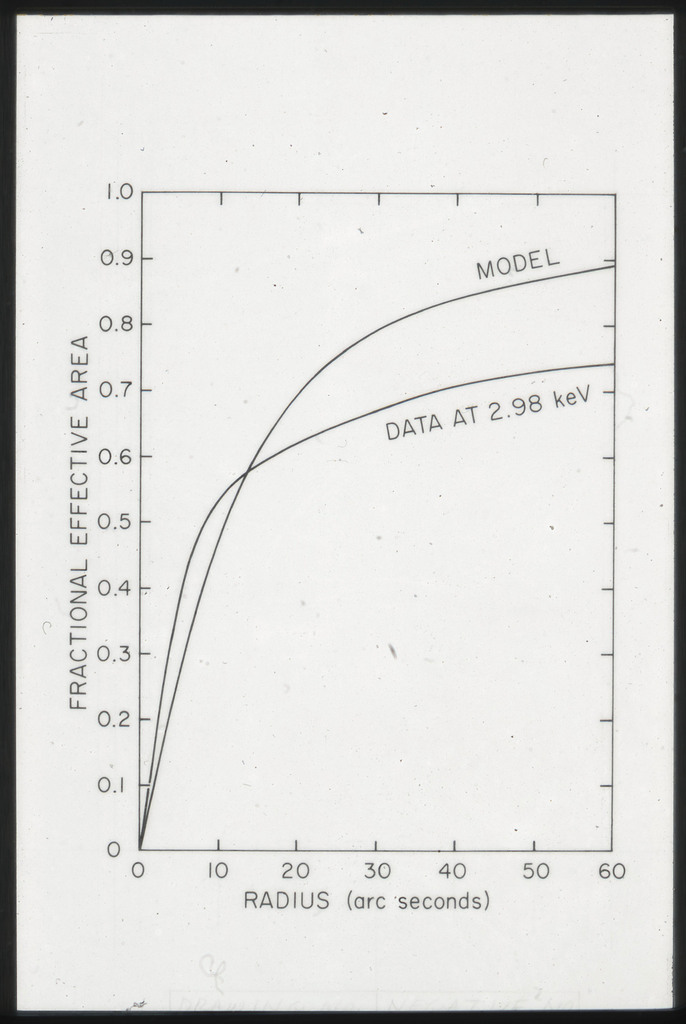 E/46 HRI-OGS effective area, 1,000 line/mm grating. Solid line is theoretical prediction, points are calibration data. |