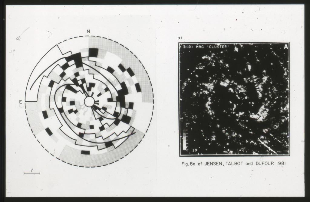E/984 (a) Binning of the HRI image to search for spiral pattern (b) Map of blue magnitude of the young star clusters. |