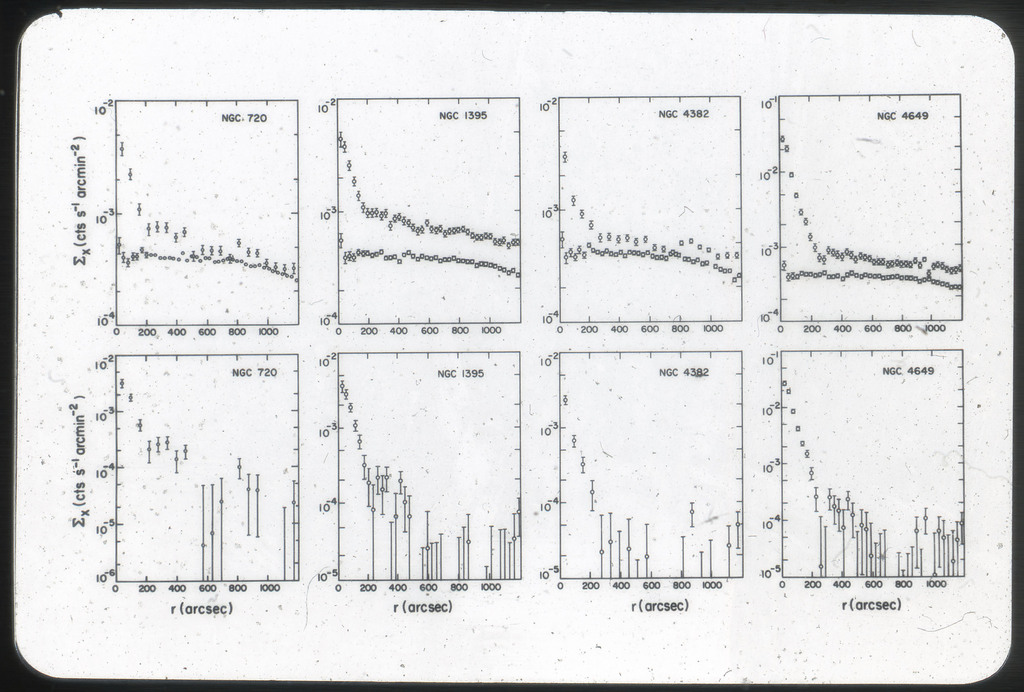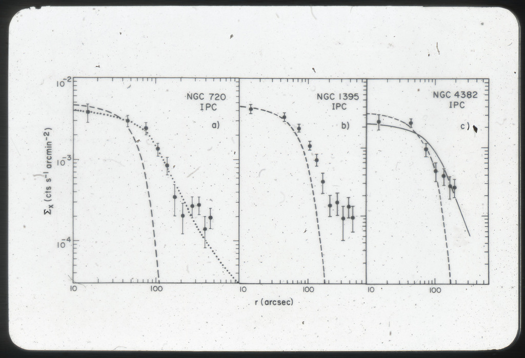 E/1032 Azimuthally averaged IPC X-ray surface brightness profiles of NGC 720, 1395, 4382 and 4649. |