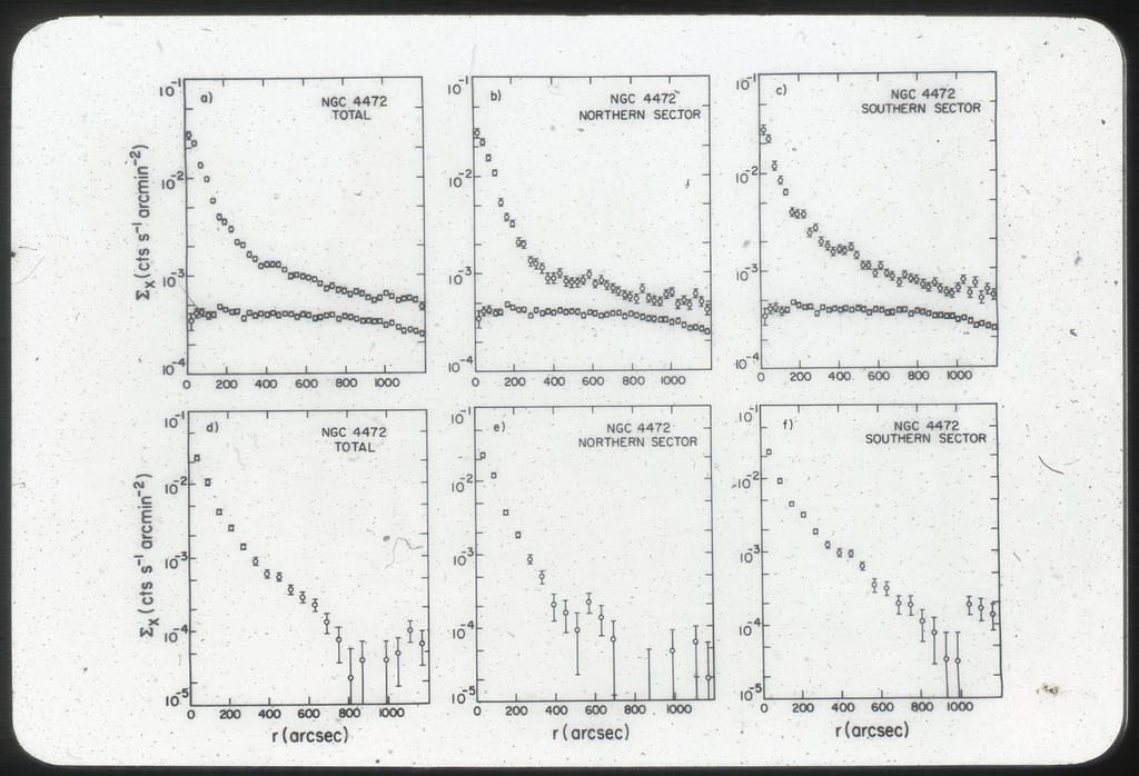E/1034 Azimuthally average IPC X-ray surface brightness profiles of NGC 4472. |