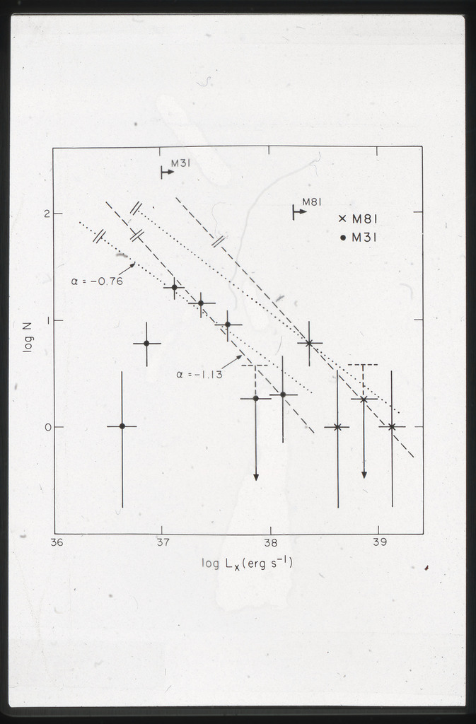 E/1045 M31 and M81 X-ray Source luminosity by function |