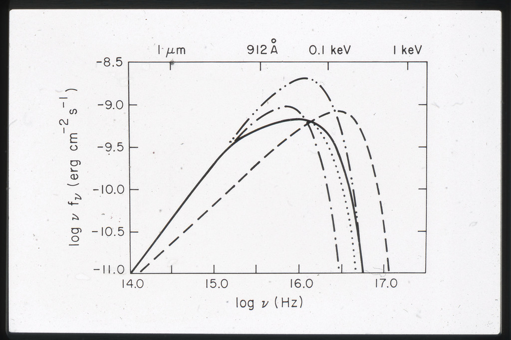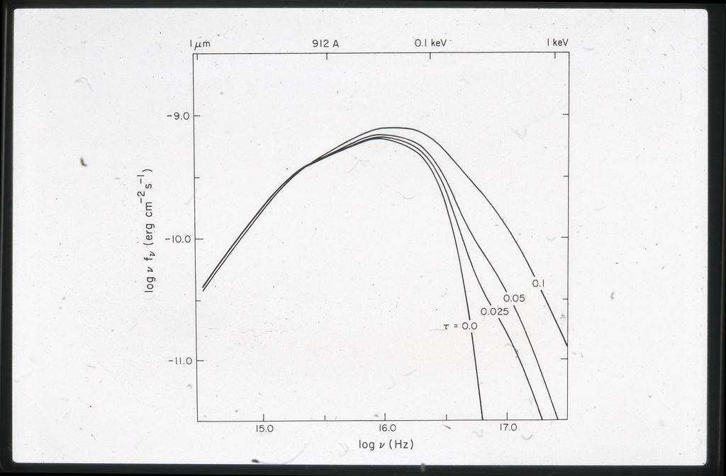 E/1060 Disk spectra calculated with different assumptions about the locally emitted radiation spectrum. |