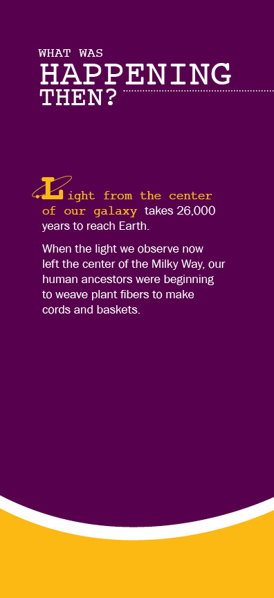 When the light we observe now left the center of the Milky Way, our human ancestors were beginning to weave plant fibers to make cords and baskets.