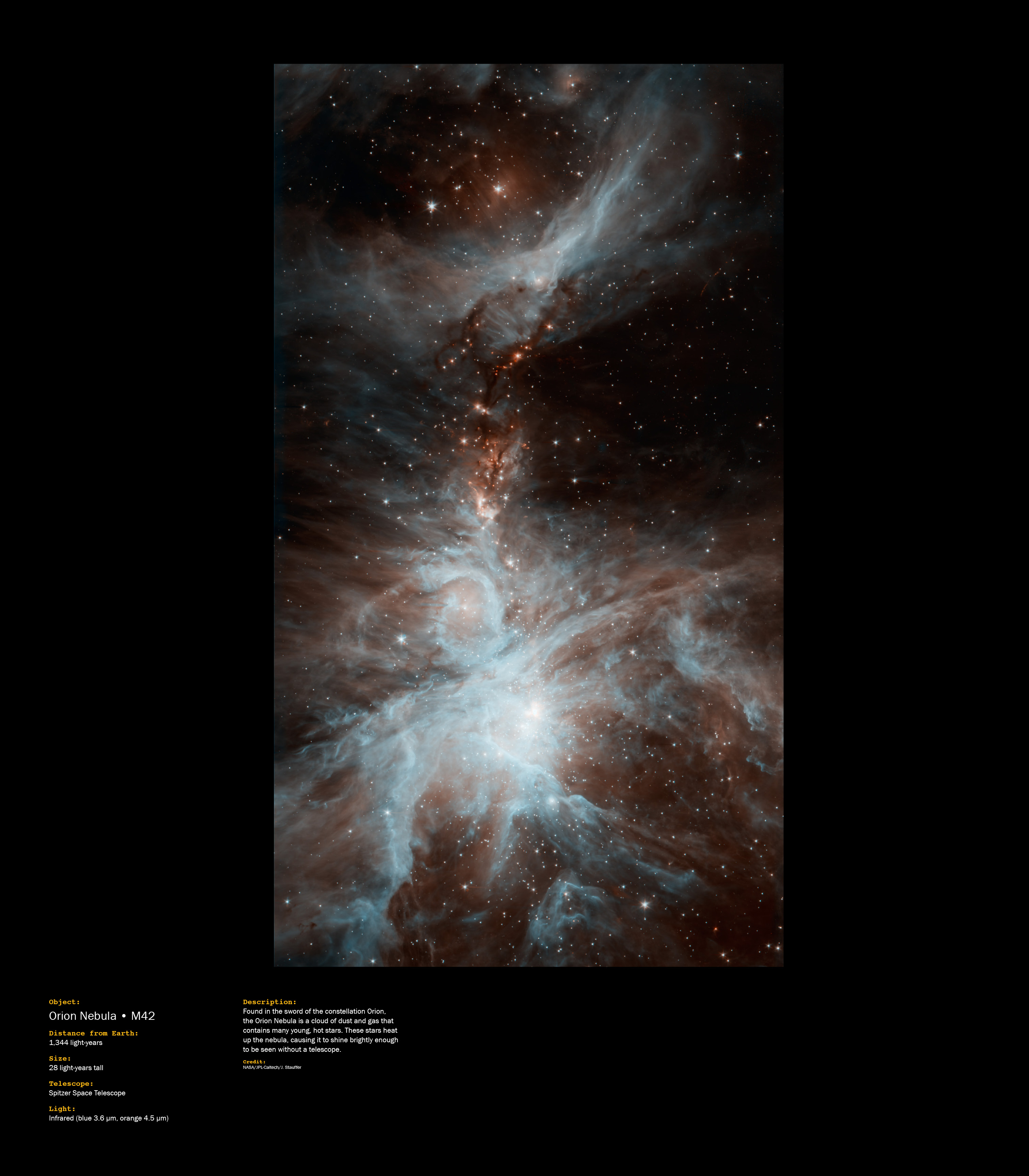 Found in the sword of the constellation Orion, the Orion Nebula is a cloud of dust and gas that contains many young, hot stars. These stars heat up the nebula, causing it to shine brightly enough to be seen without a telescope.