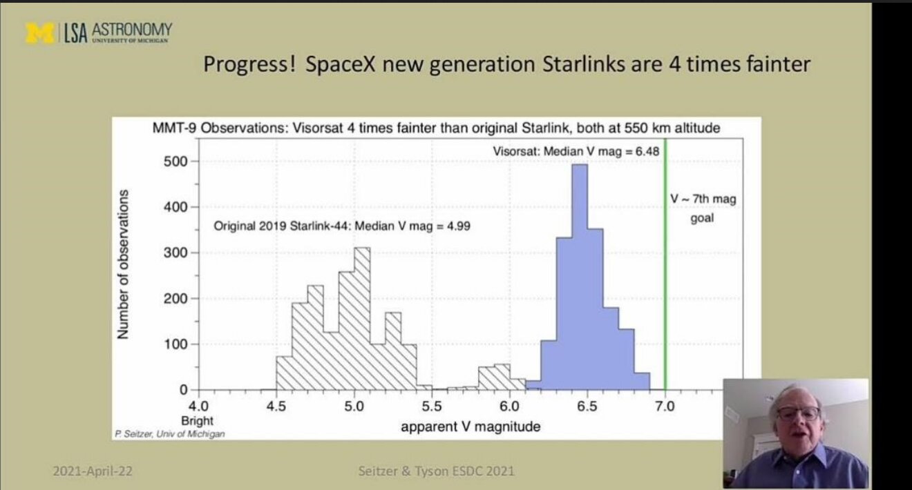 Brightness reduction of VisorSats, graphic by Pat Seitzer, Apr 2021