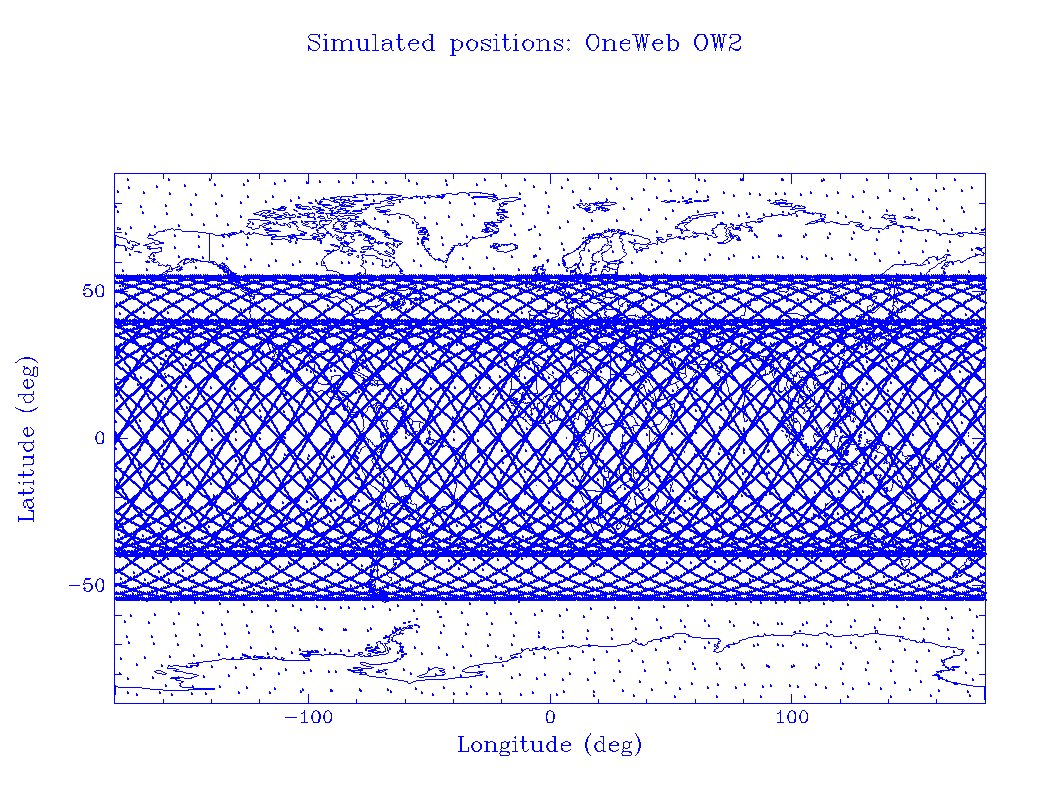 Realization of One Web (Model IV) constellation, showing the varying density of satellites with latitude.