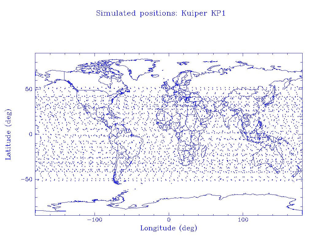 Realization of Kuiper (Model V) constellation, showing the varying density of satellites with latitude.