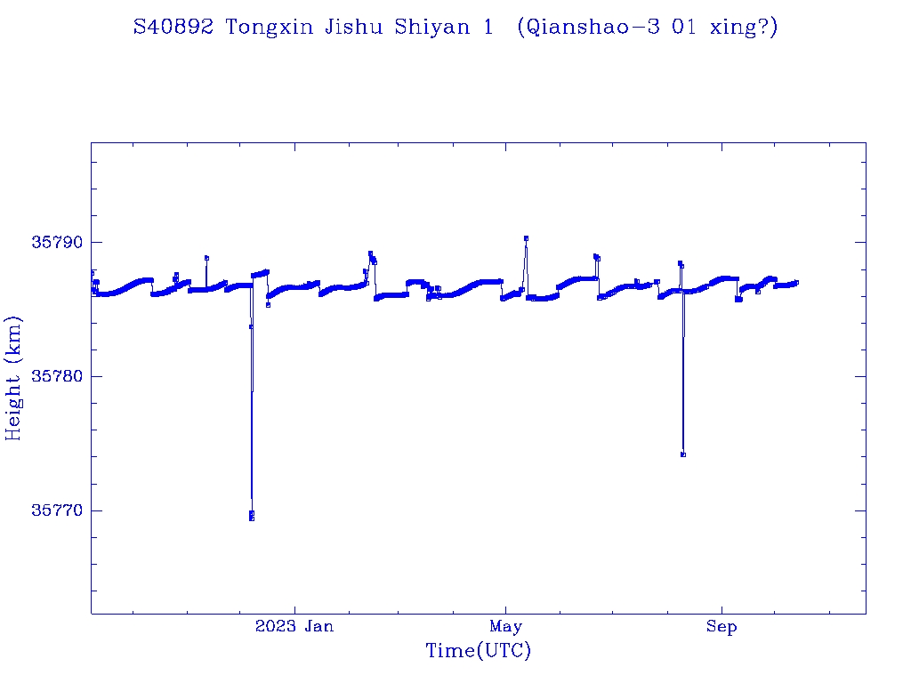 | 2015-046A | S40892 | Tongxin Jishu Shiyan 1 | Qianshao-3 01 xing? | TJS1/QS-3 Sigint | 2015 Sep 12 | 35776 x 35797 x 0.07 |  |  |