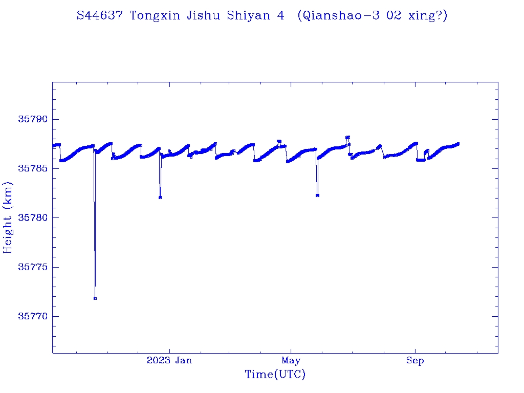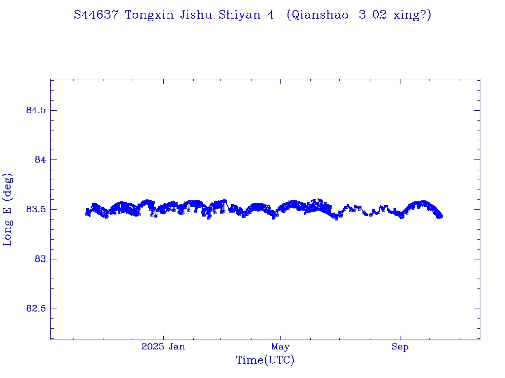 | 2019-070A | S44637 | Tongxin Jishu Shiyan 4 | Qianshao-3 02 xing? | TJS4/QS-3 Sigint | 2019 Oct 17 | 35775 x 35799 x 0.08 |  |  |