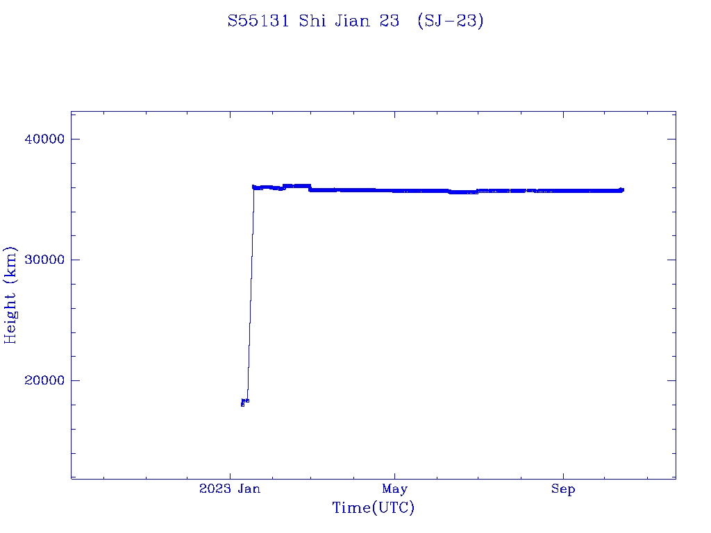 | 2023-002A | S55131 | Shi Jian 23 | SJ-23 | SJ23 UNK | 2023 Jan 8 | 35814 x 35822 x 1.18 |  |  |