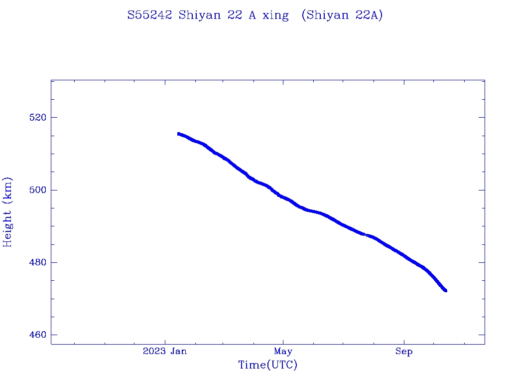 | 2023-006A | S55242 | Shiyan 22 A xing | Shiyan 22A | SY22A | 2023 Jan 13 | 459 x 484 x 43.19 |  |