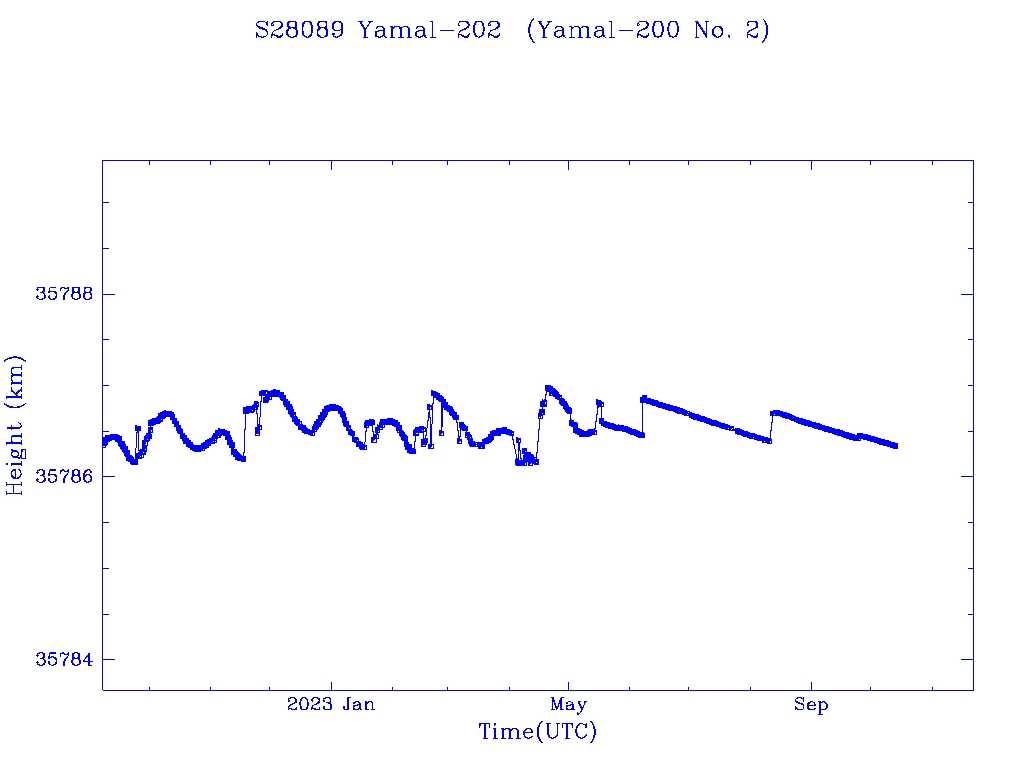 | 2003-053A | S28089 | Yamal-202 | Yamal-200 No. 2 | Commercial comms with mil transponder | 2003 Nov 24 | 35761 x 35810 x 3.85 |  |  |
