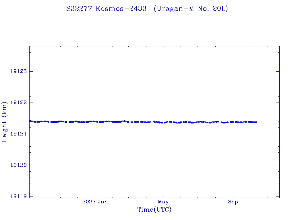 | 2007-052C | S32277 | Kosmos-2433 | Uragan-M No. 20L | GLONASS navigation sat | 2007 Oct 26 | 19082 x 19160 x 66.02 |  |