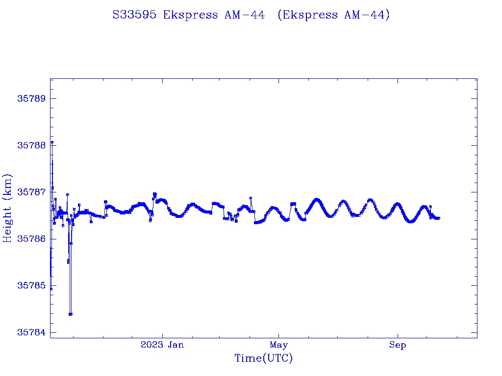 | 2009-007A | S33595 | Ekspress AM-44 | Ekspress AM-44 | Civilian television sat | 2009 Feb 11 | 35768 x 35803 x 0.93 |  |  |