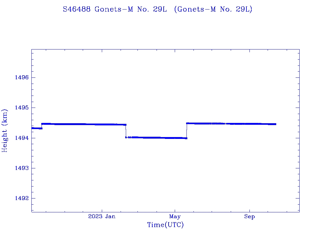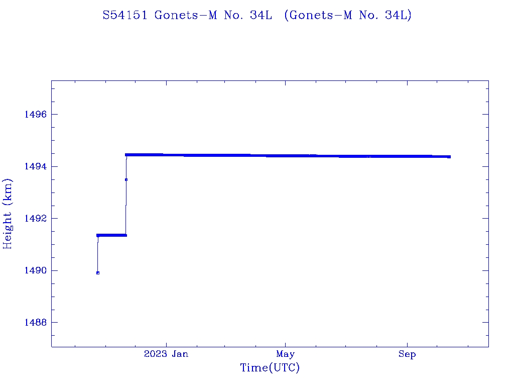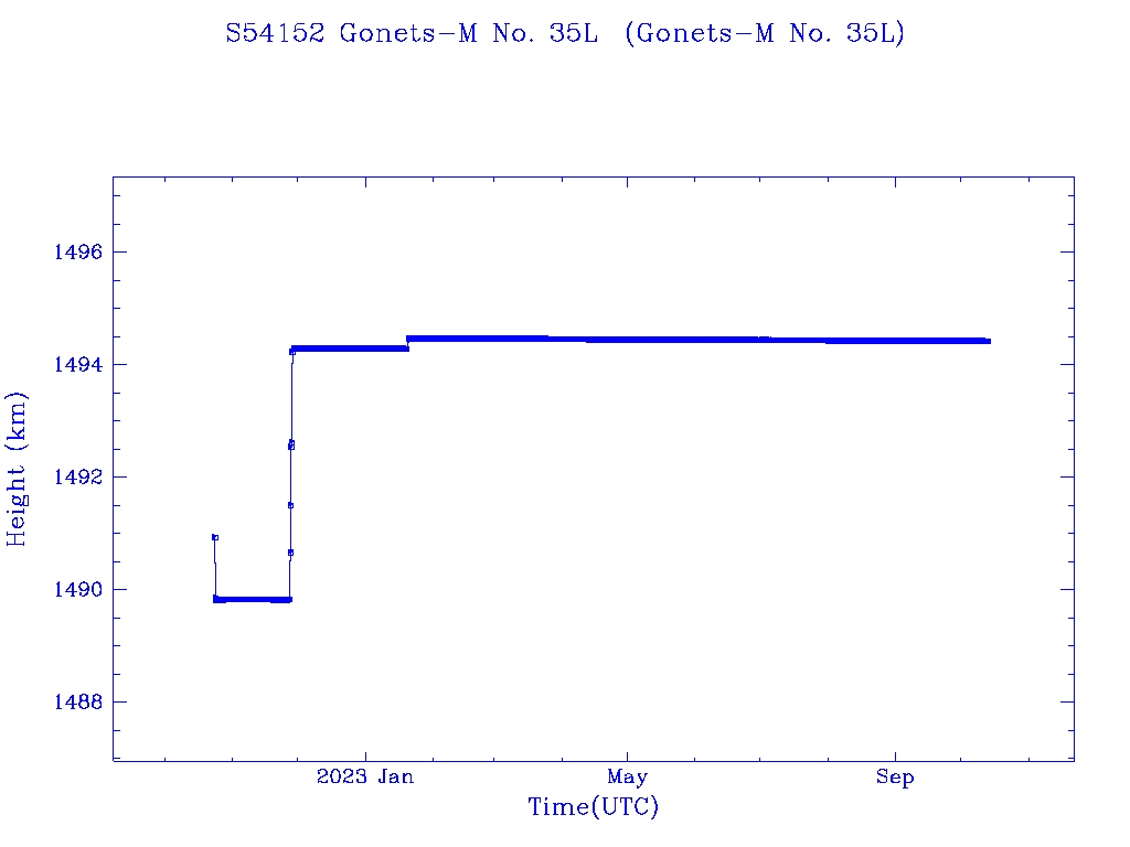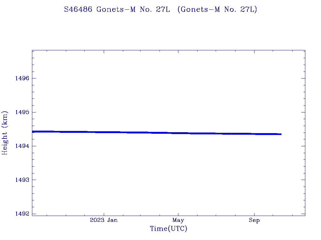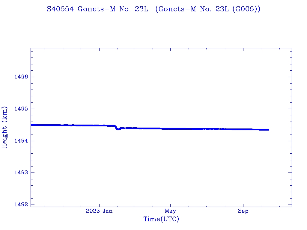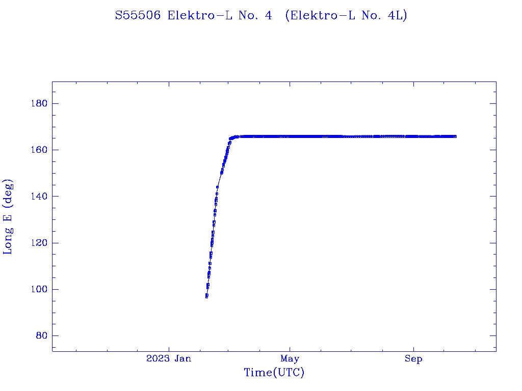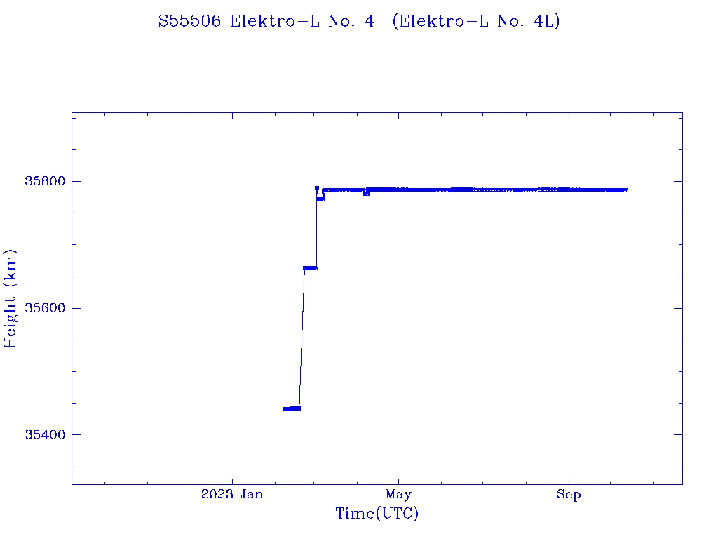 | 2023-016A | S55506 | Elektro-L No. 4 | Elektro-L No. 4L | Weather satellite | 2023 Feb 5 | 35778 x 35793 x 0.11 |  |  |