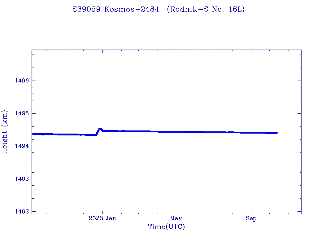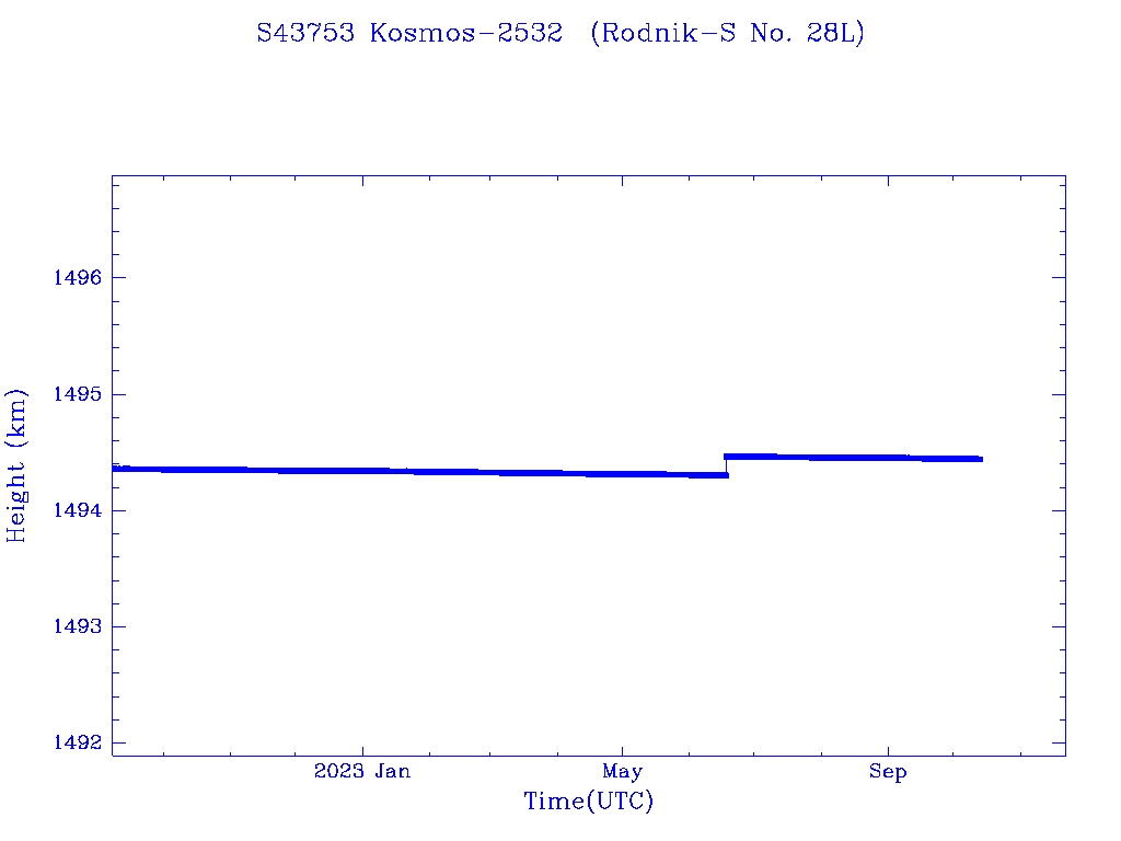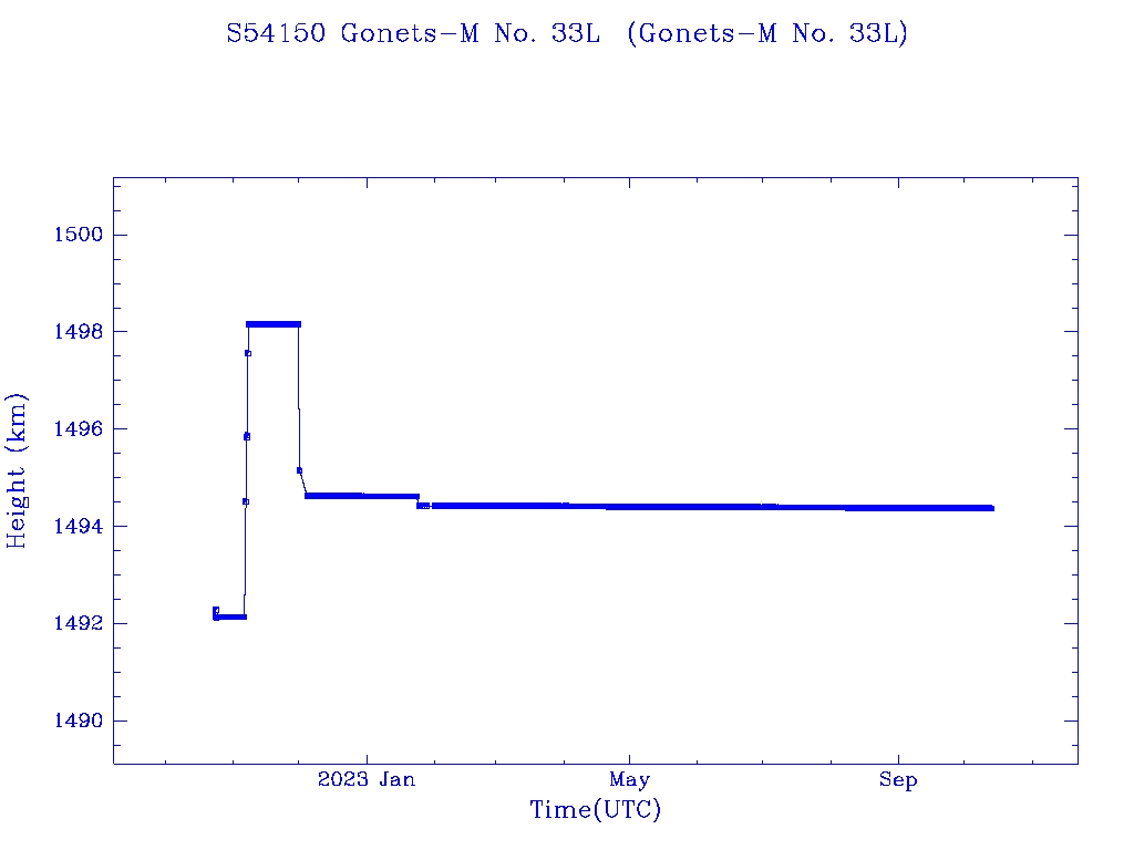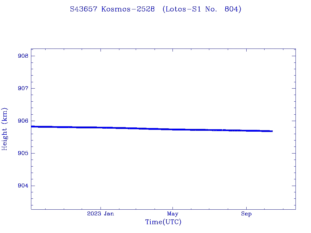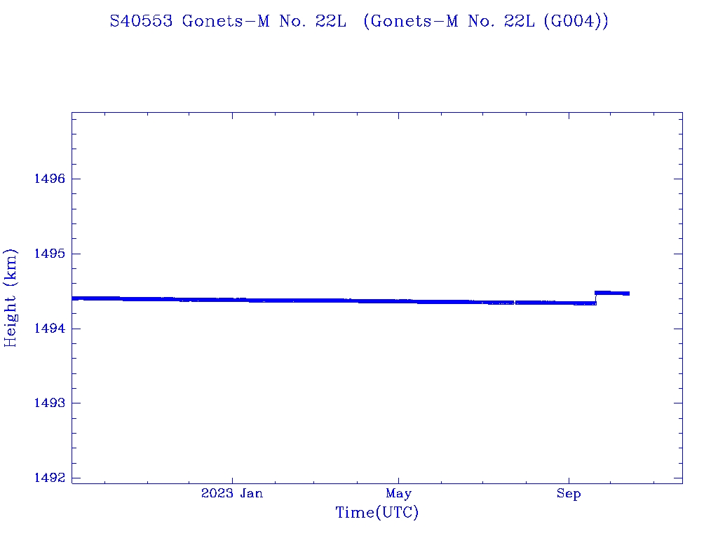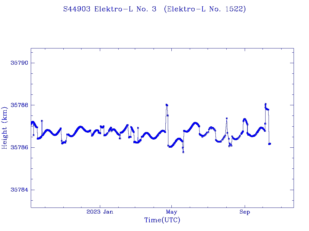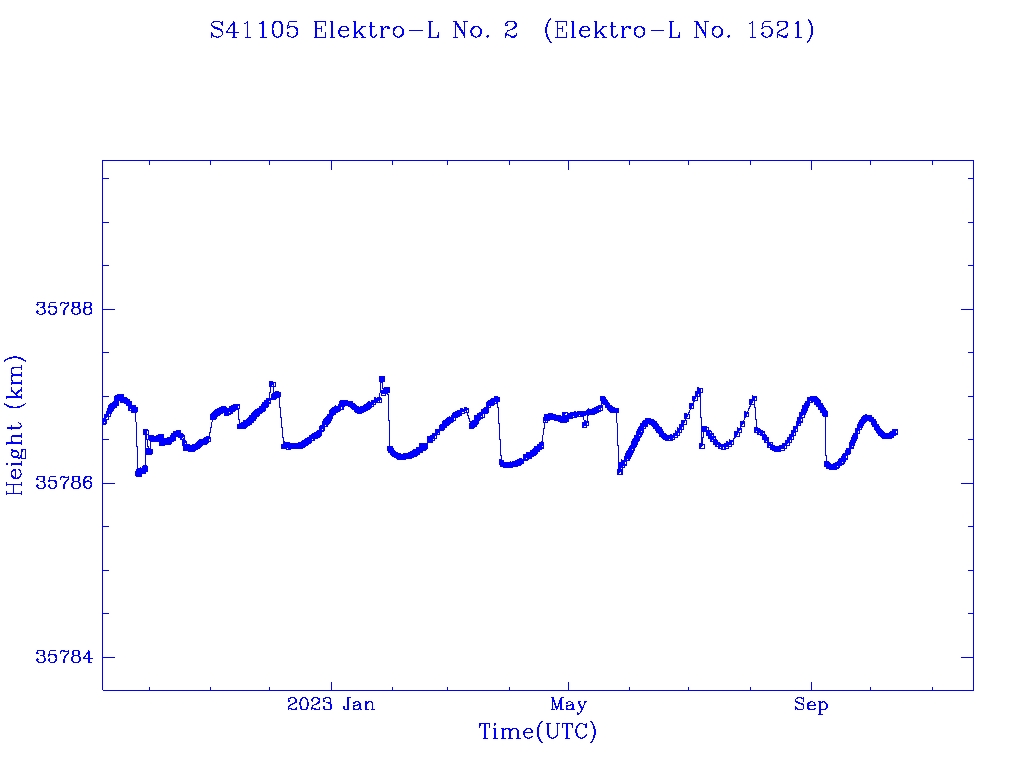 | 2023-016A | S55506 | Elektro-L No. 4 | Elektro-L No. 4L | Weather satellite | 2023 Feb 5 | 35778 x 35793 x 0.11 |  |  |