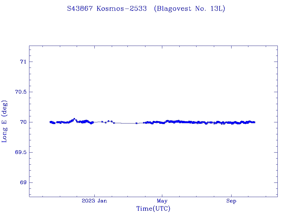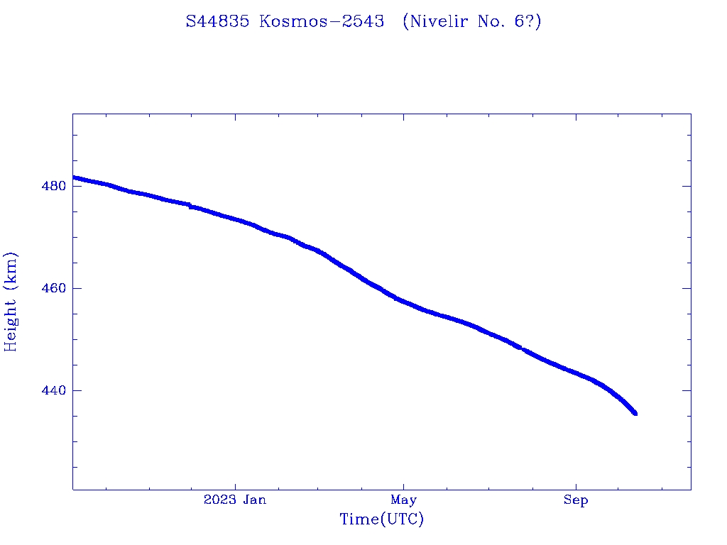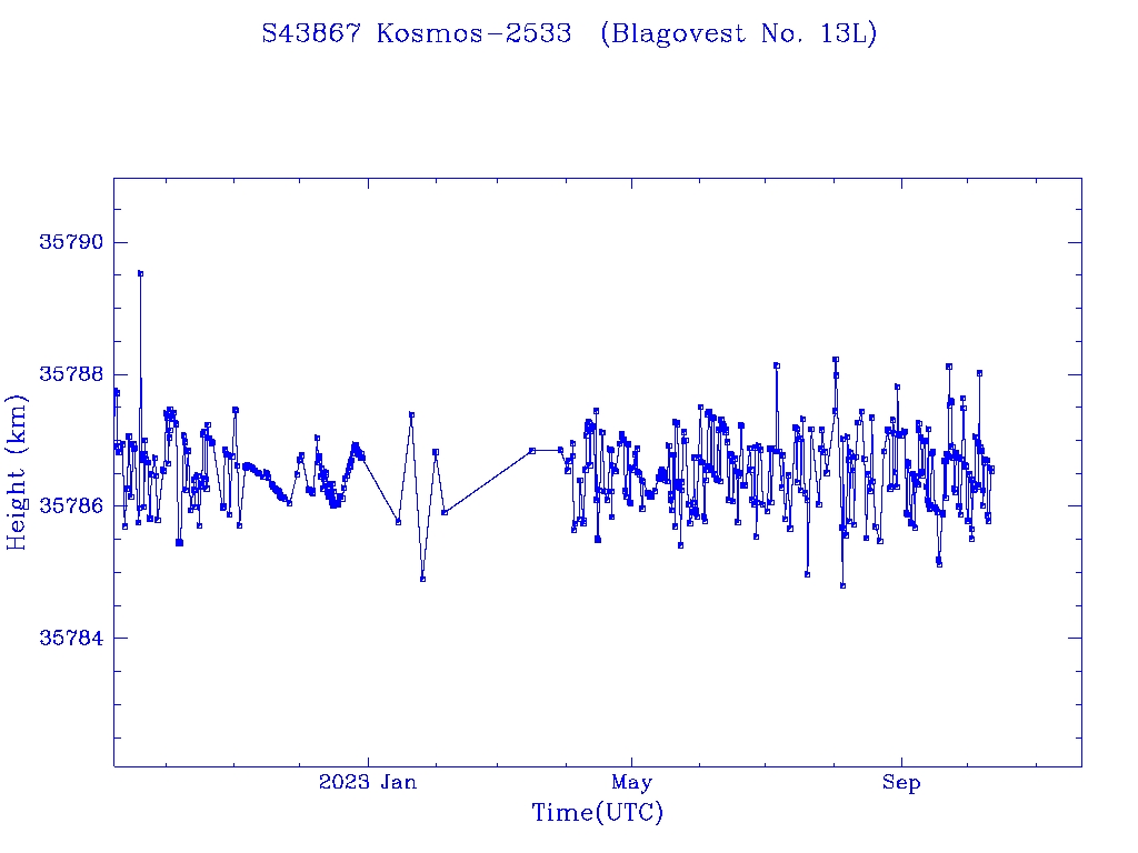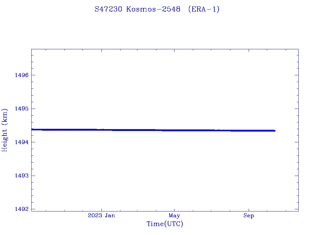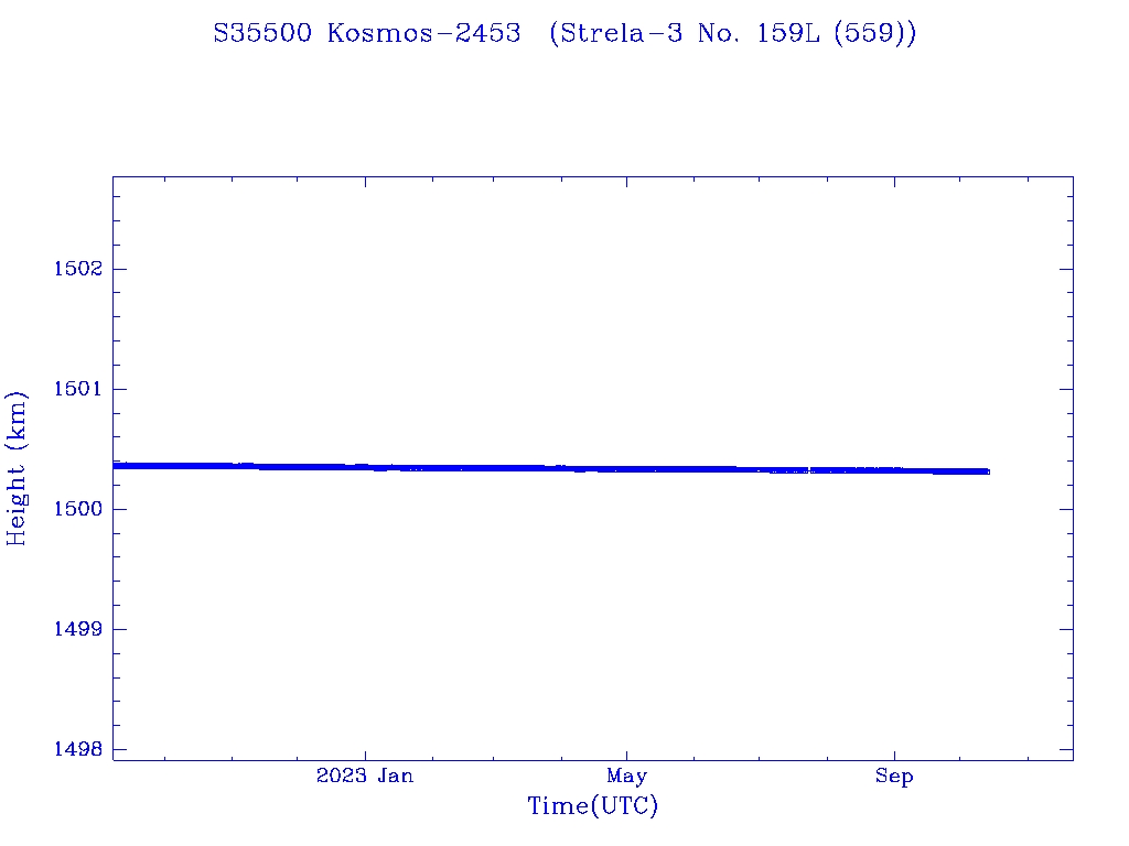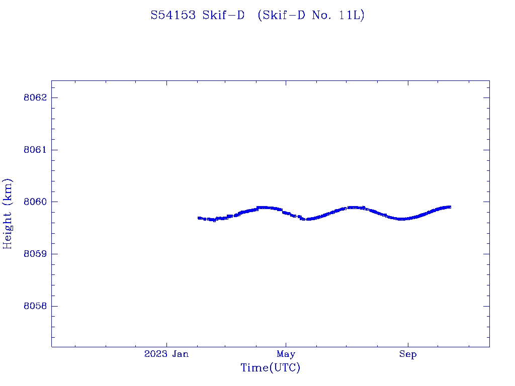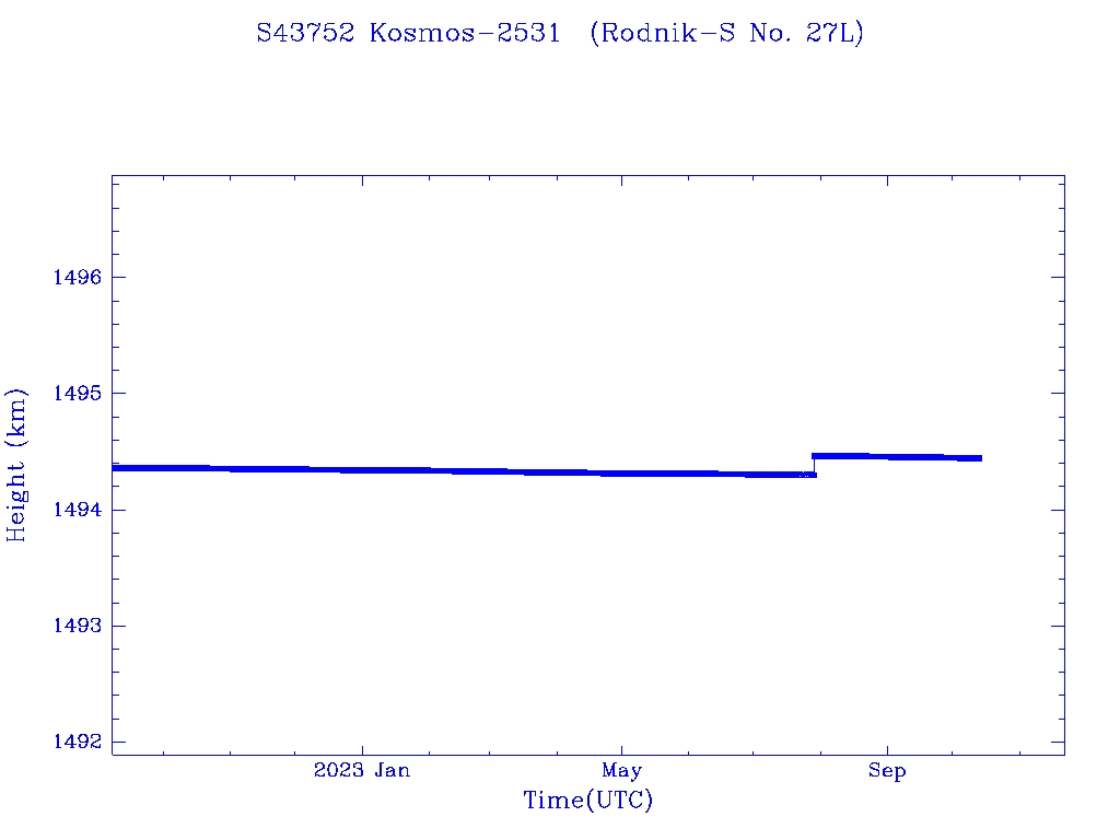 | 2023-016A | S55506 | Elektro-L No. 4 | Elektro-L No. 4L | Weather satellite | 2023 Feb 5 | 35778 x 35793 x 0.11 |  |  |