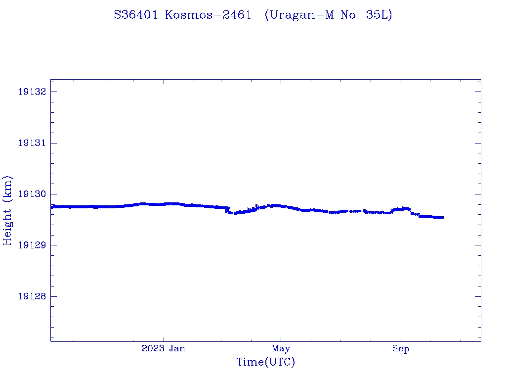 | 2010-007B | S36401 | Kosmos-2461 | Uragan-M No. 35L | GLONASS navigation sat | 2010 Mar 1 | 19081 x 19177 x 65.89 |  |