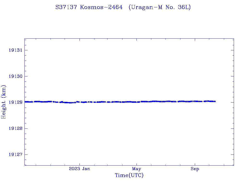 | 2010-041A | S37137 | Kosmos-2464 | Uragan-M No. 36L | GLONASS navigation sat | 2010 Sep 2 | 19084 x 19173 x 63.91 |  |