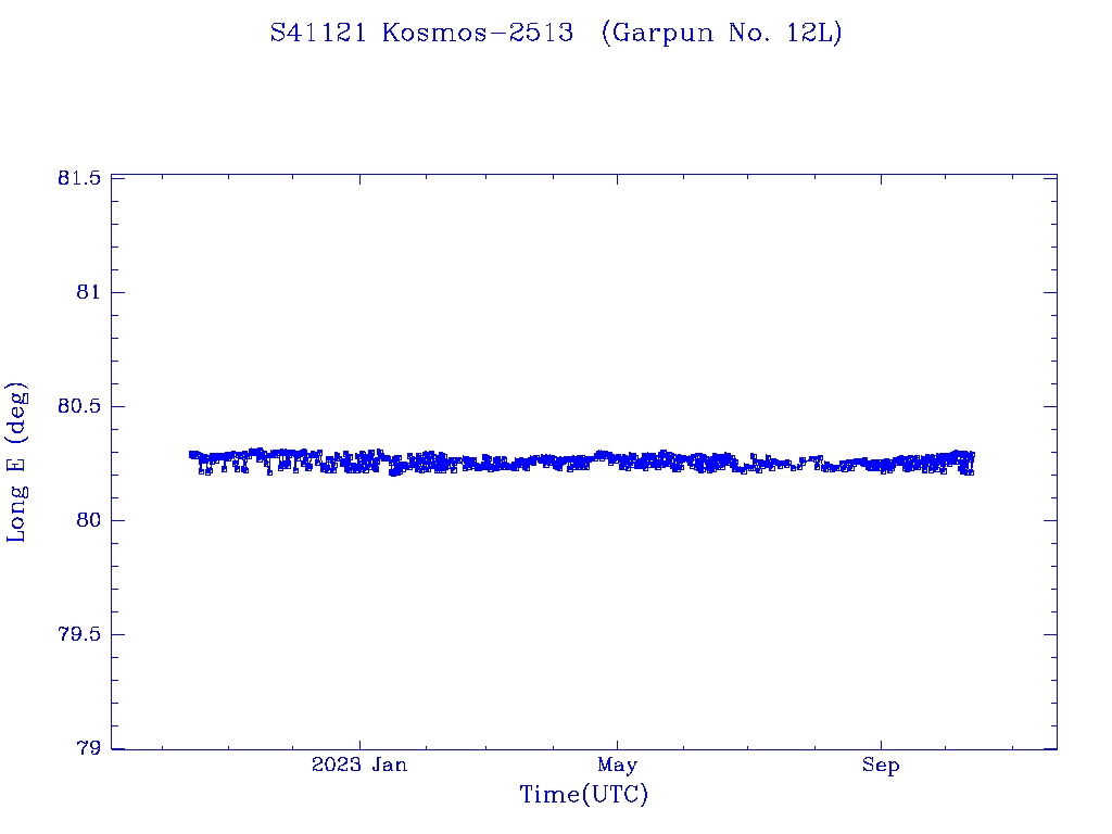 | 2015-075A | S41121 | Kosmos-2513 | Garpun No. 12L | Military data relay sat | 2015 Dec 13 | 35771 x 35800 x 0.05 |  |  |
