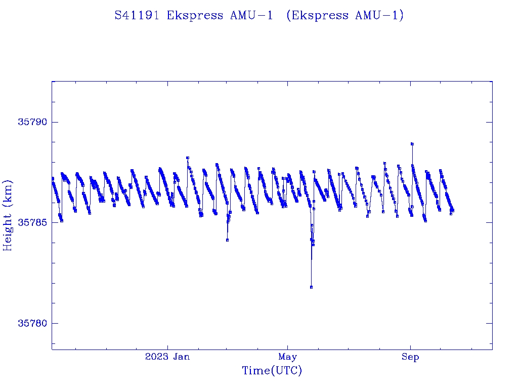 | 2015-082A | S41191 | Ekspress AMU-1 | Ekspress AMU-1 | Civilian television sat | 2015 Dec 24 | 35773 x 35797 x 0.02 |  |  |