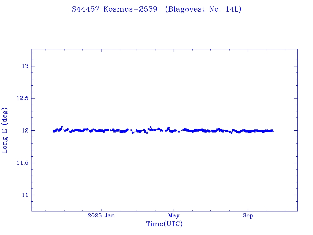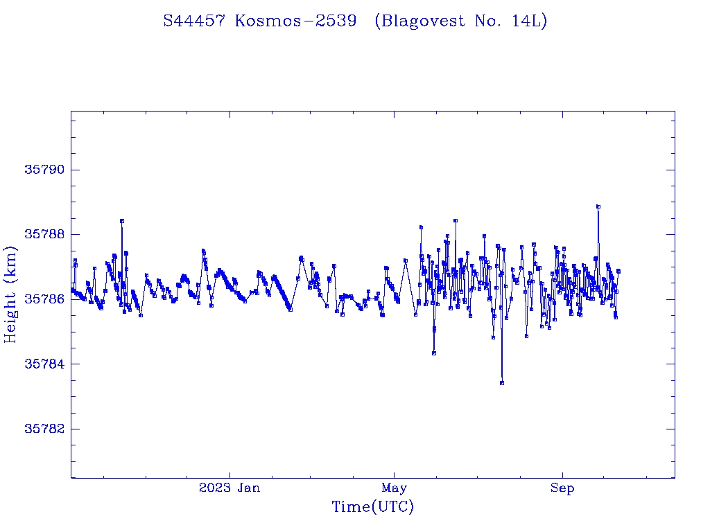 | 2019-048A | S44457 | Kosmos-2539 | Blagovest No. 14L | Military comms sat | 2019 Aug 5 | 35785 x 35788 x 0.02 |  |  |