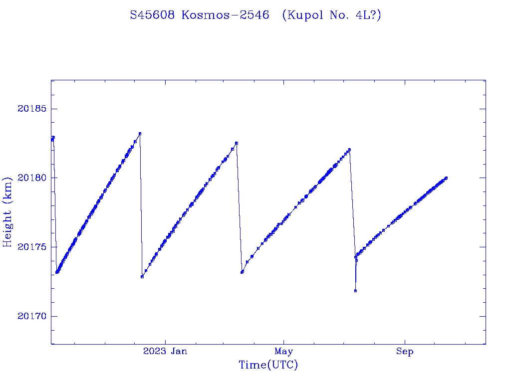 | 2020-031A | S45608 | Kosmos-2546 | Kupol No. 4L? | Elliptical orbit missile warning sat | 2020 May 22 | 2594 x 37765 x 63.14 |  |
