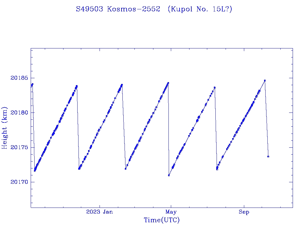 | 2021-113A | S49503 | Kosmos-2552 | Kupol No. 15L? | Elliptical orbit missile warning sat | 2021 Nov 25 | 1833 x 38513 x 63.34 |  |