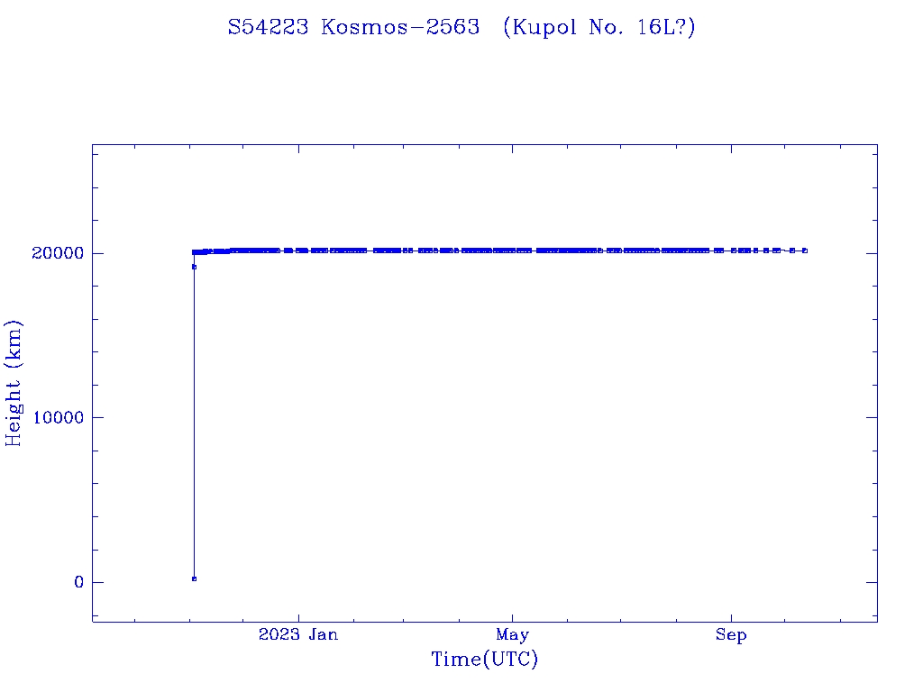 | 2022-145A | S54223 | Kosmos-2563 | Kupol No. 16L? | Elliptical orbit missile warning sat | 2022 Nov 2 | 1245 x 39104 x 63.87 |  |