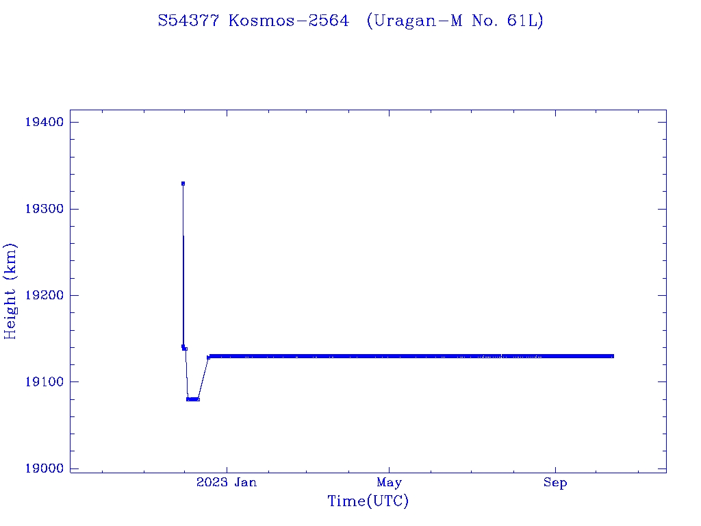 | 2022-161A | S54377 | Kosmos-2564 | Uragan-M No. 61L | GLONASS navigation sat | 2022 Nov 28 | 19105 x 19154 x 64.75 |  |