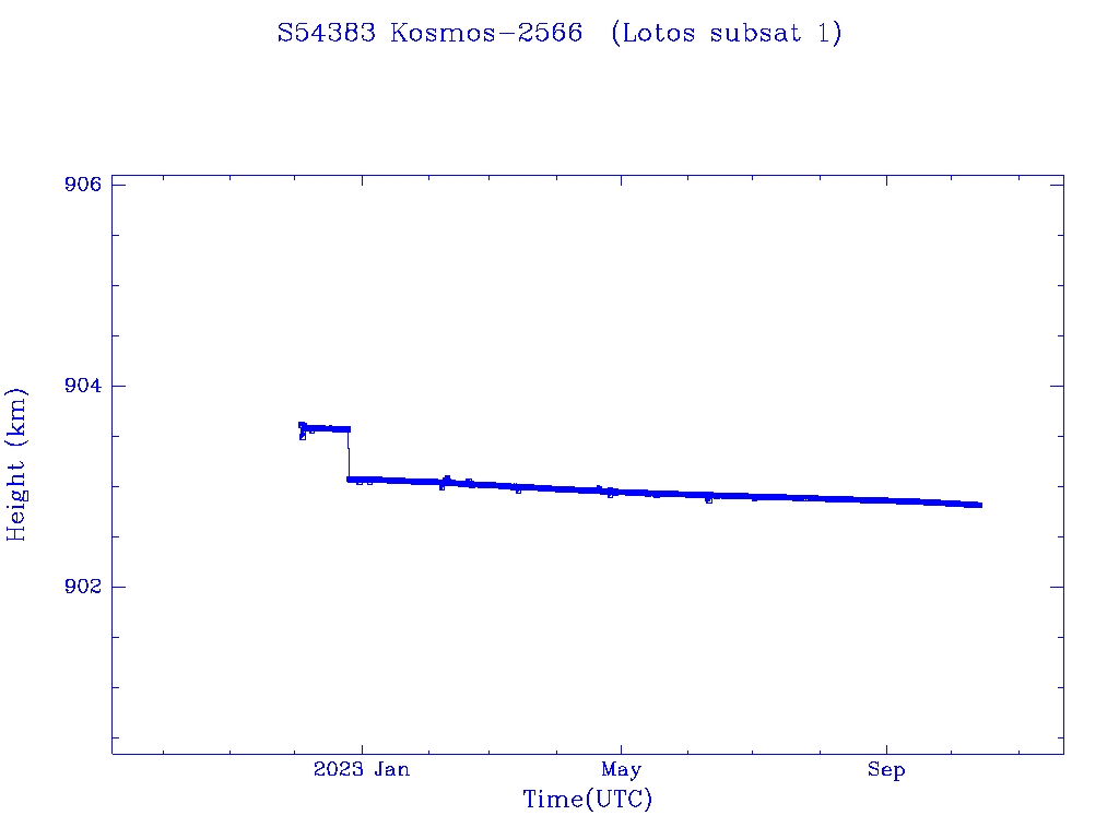 | 2022-163C | S54383 | Kosmos-2566 | Lotos subsat 1 | Unknown subsatellite | 2022 Nov 30 | 899 x 905 x 67.14 |  |