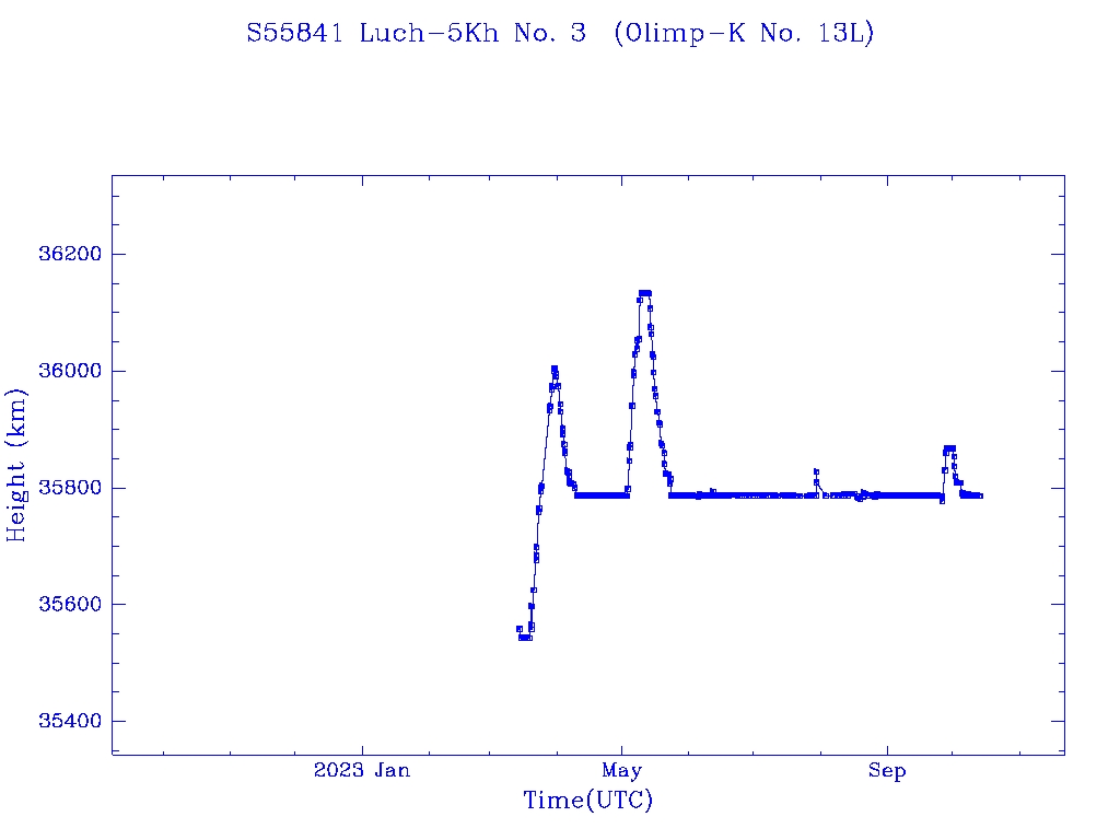 | 2023-031A | S55841 | Luch-5Kh No. 3 | Olimp-K No. 13L | GEO sigint surveillance sat | 2023 Mar 12 | 35776 x 35795 x 0.05 |  |  |
