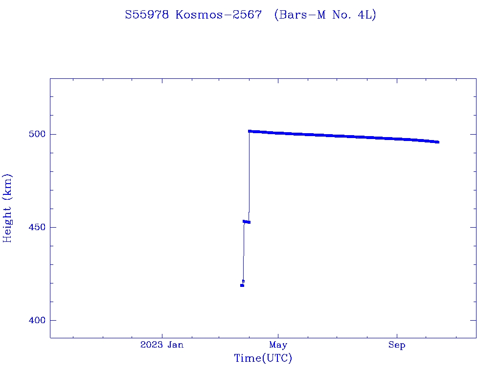 | 2023-040A | S55978 | Kosmos-2567 | Bars-M No. 4L | Military mapping sat | 2023 Mar 23 | 489 x 501 x 97.61 |  |