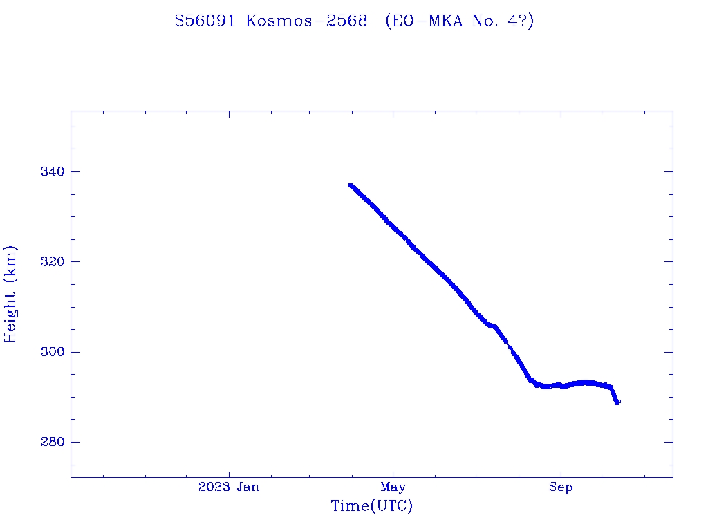 | 2023-045A | S56091 | Kosmos-2568 | EO-MKA No. 4? | EMKA Low orbit sat | 2023 Mar 29 | 284 x 293 x 96.45 |  |