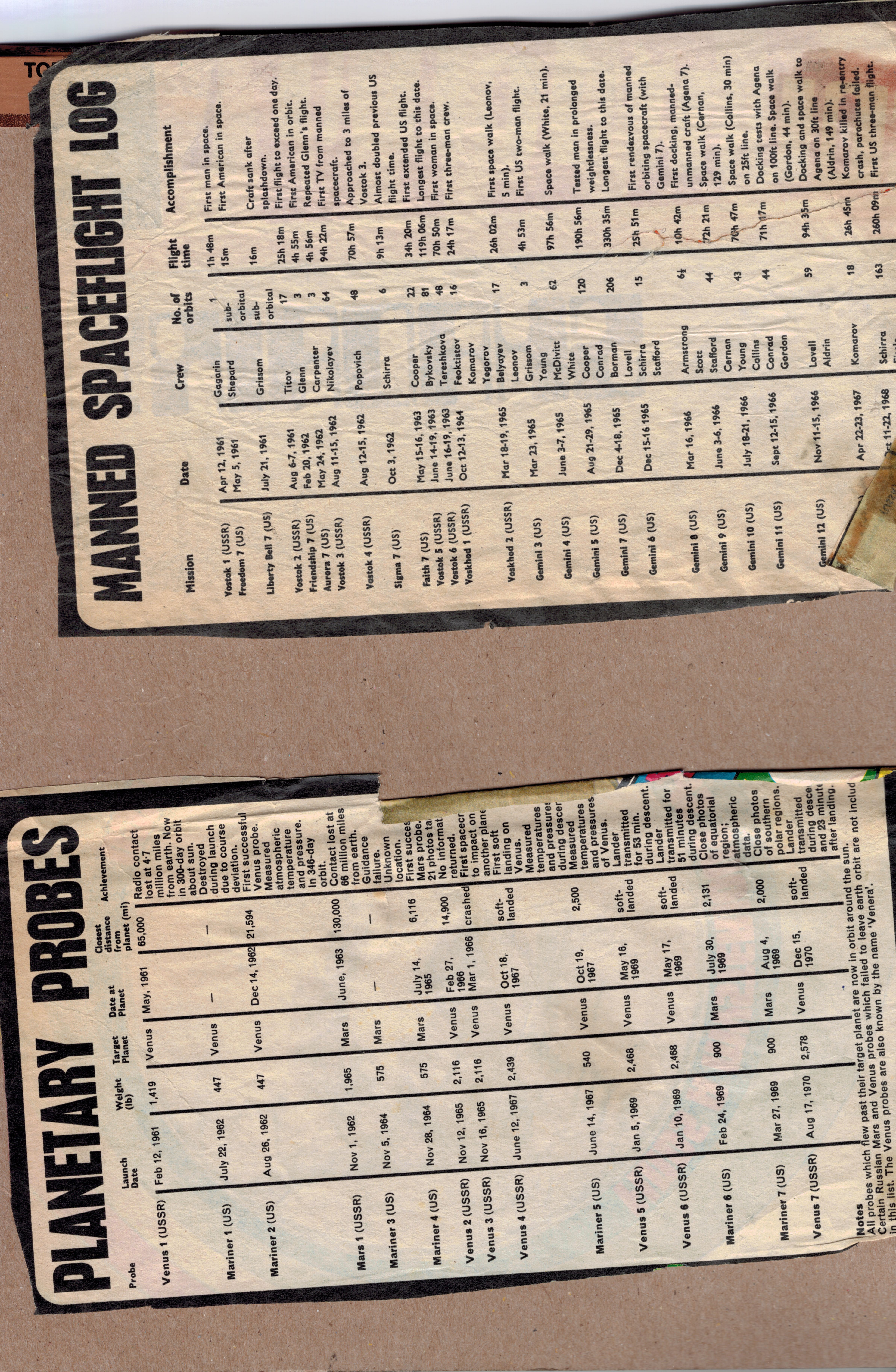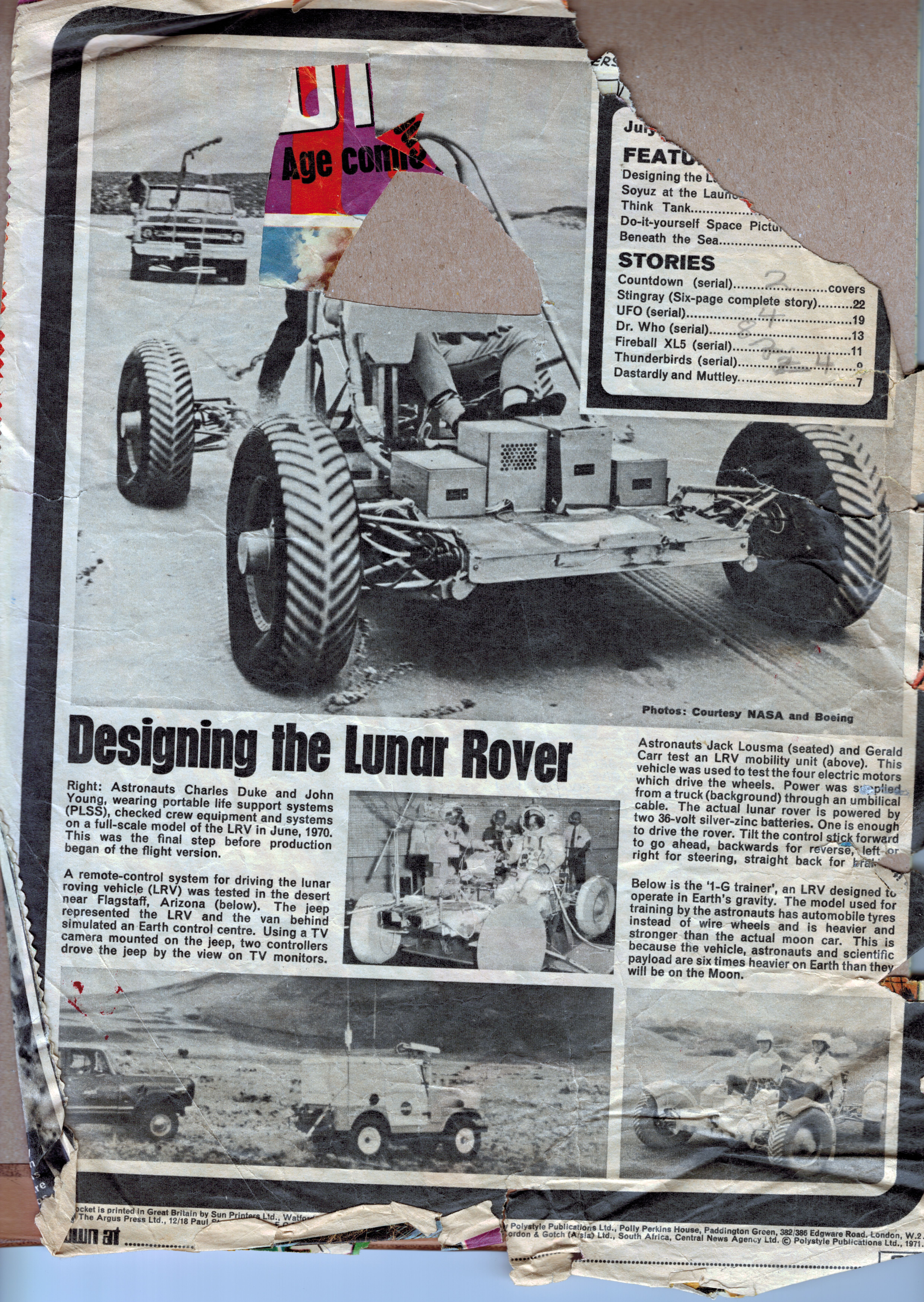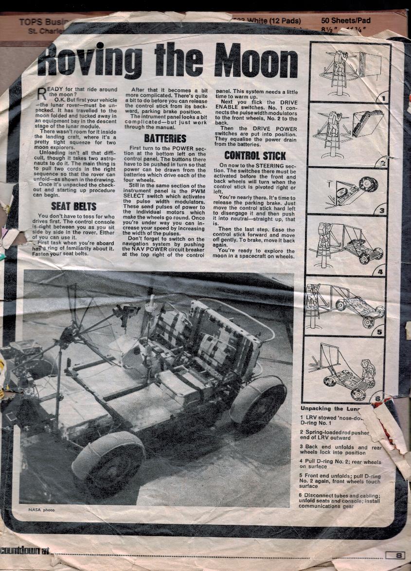 Although the parental units forced me to jettison my comic collection, I cut out the space-related articles and pasted them in a scrapbook which I still possess. I've scanned a selection of the disintegrating pages to give a sense of the high quality of these articles; I've also included fragments of the comic strips from the reverse side of the space articles. Hopefully these extracts count as a fair use subset.
