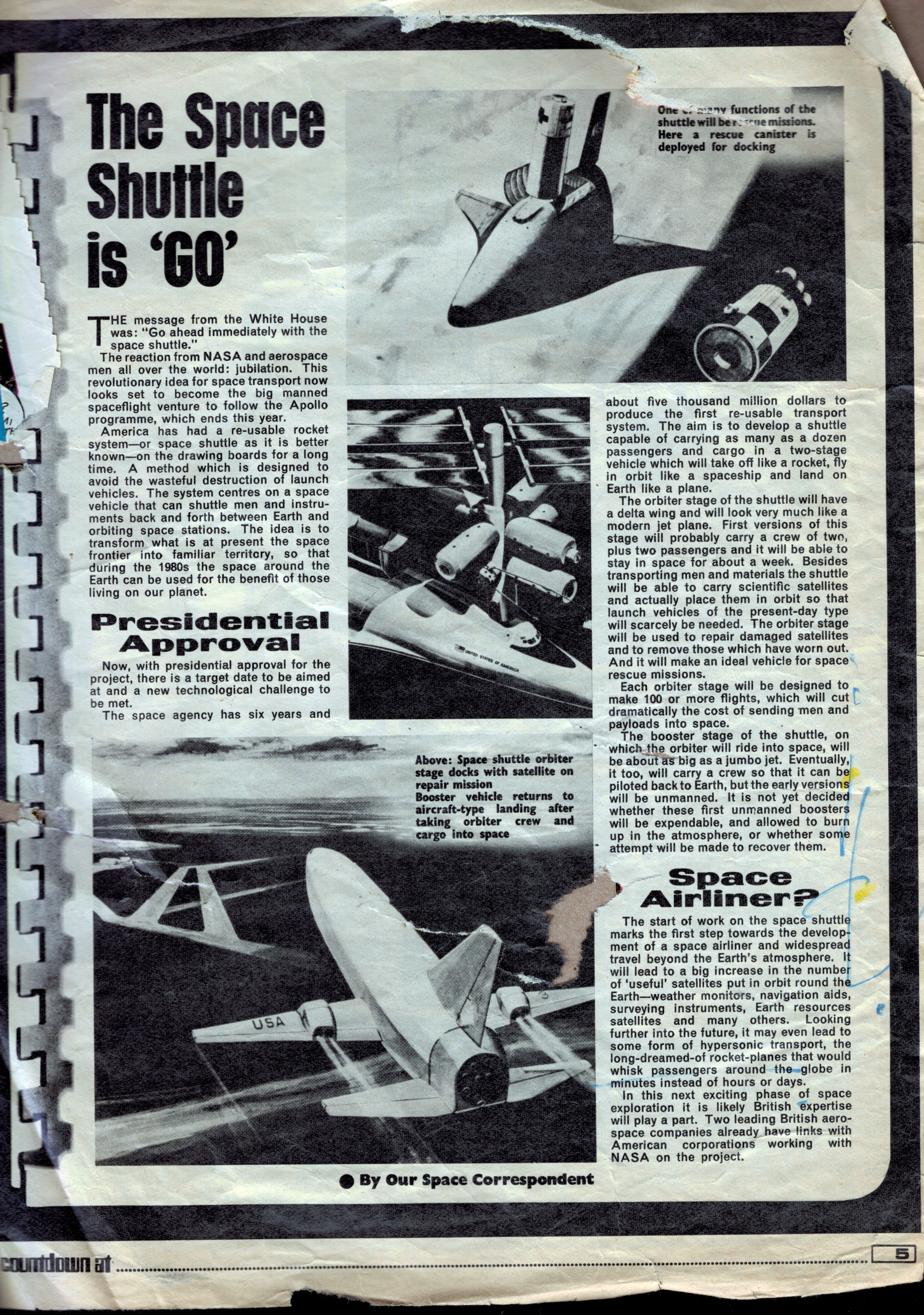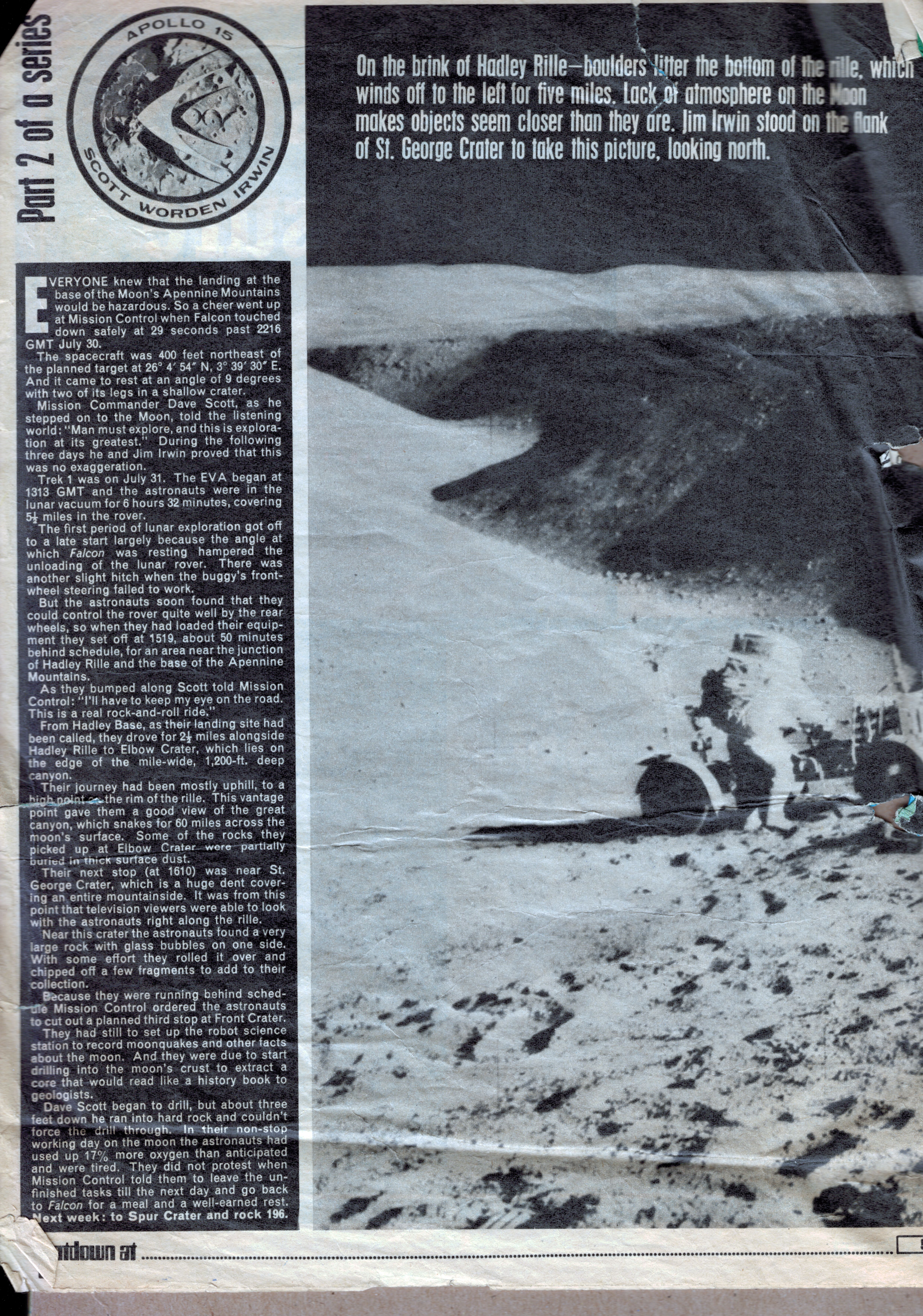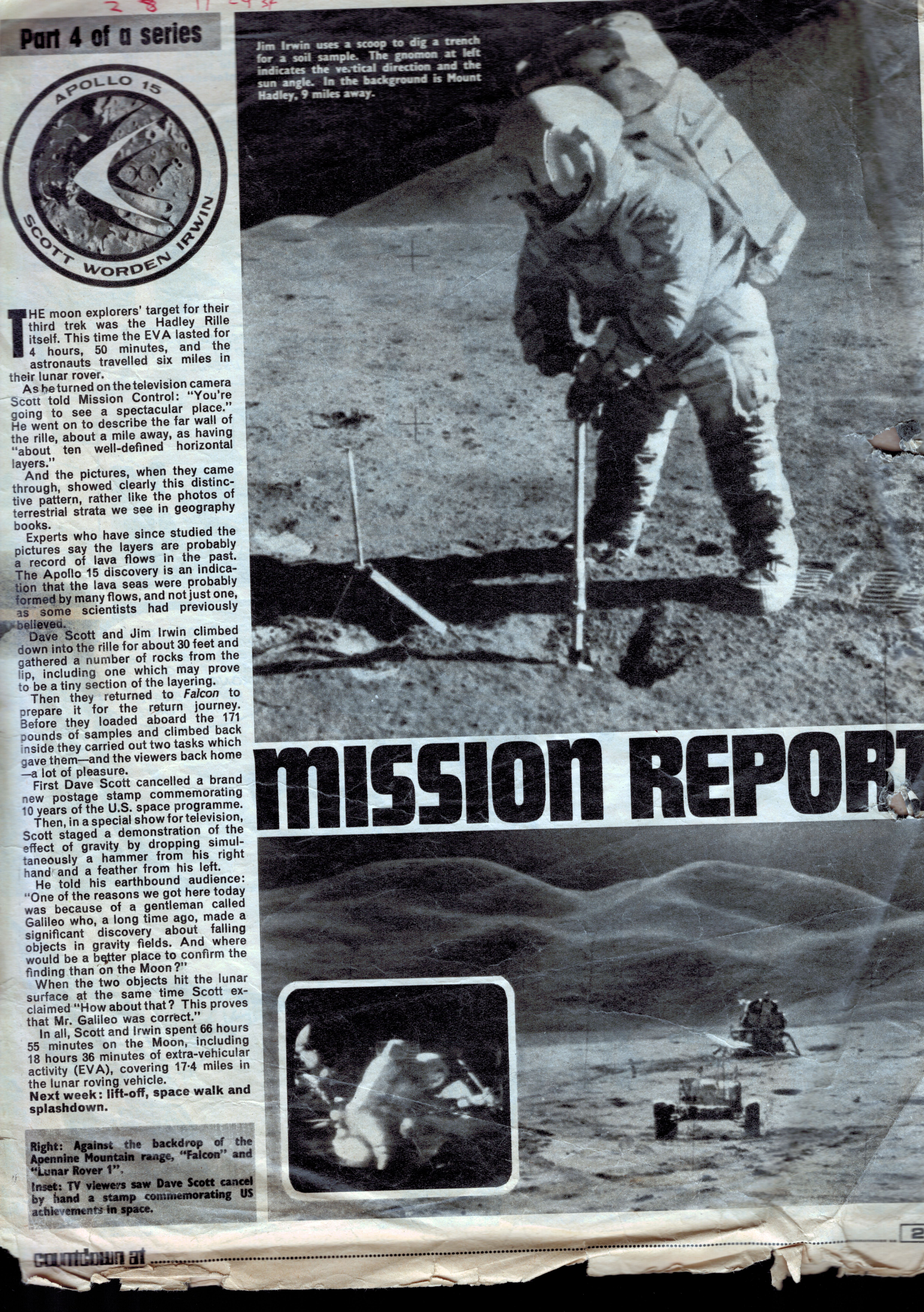 Although the parental units forced me to jettison my comic collection, I cut out the space-related articles and pasted them in a scrapbook which I still possess. I've scanned a selection of the disintegrating pages to give a sense of the high quality of these articles; I've also included fragments of the comic strips from the reverse side of the space articles. Hopefully these extracts count as a fair use subset.