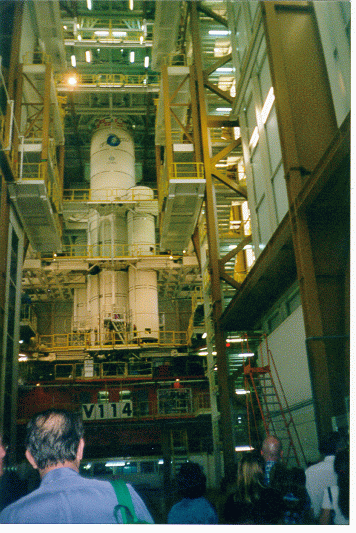 The Ariane 4 assembly building, with V114's first stage visible.
