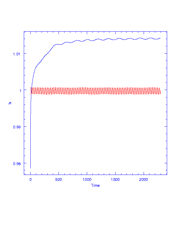H = (h*h/GM), square of angular momentum (unit AU), vs time. See SIRTF gain angular momentum from the Earth thanks to the magic of the three-body problem. Earth is in red, bouncing around the Earth-Moon barycenter.