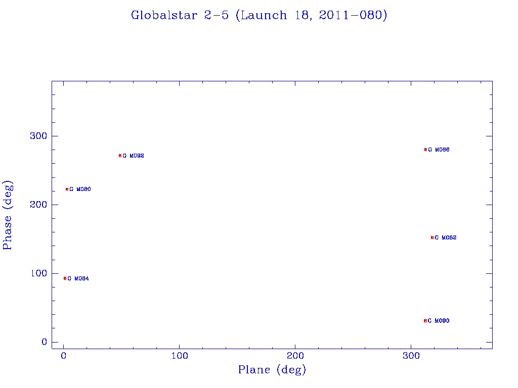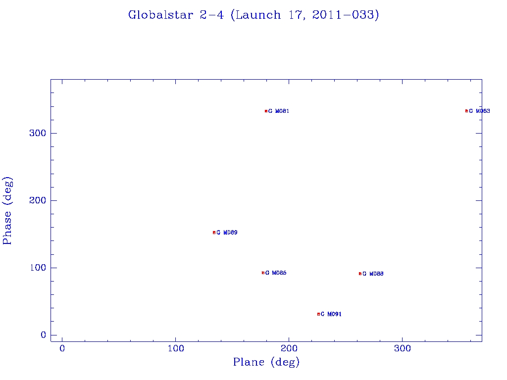 Click on mission name for details of individual satellites. Phase/Plane plots only include satellites in`operational orbit' (status = O)