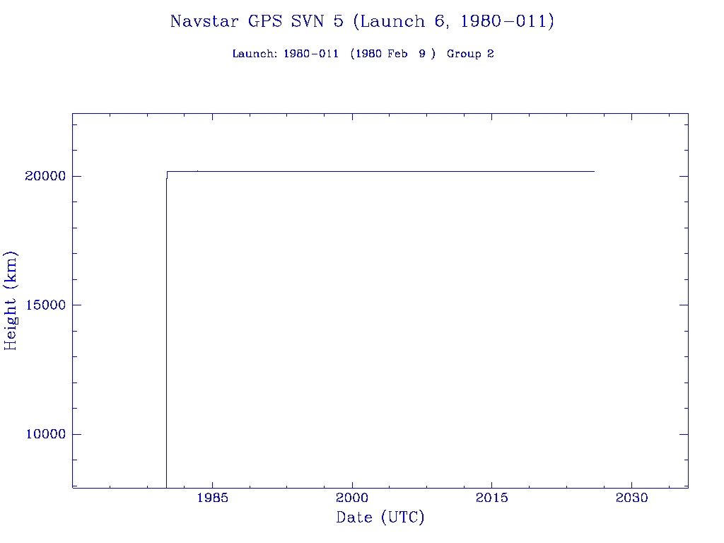 | Navstar GPS SVN 5 (Launch 6, 1980-011) | 1 | 0 | 0 | 0 | 0 | 1 | 1 | 0 | 0 |  |  |  |