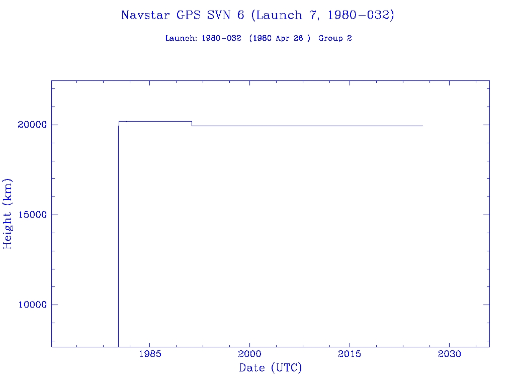 | Navstar GPS SVN 6 (Launch 7, 1980-032) | 1 | 0 | 0 | 0 | 0 | 1 | 1 | 0 | 0 |  |  |  |