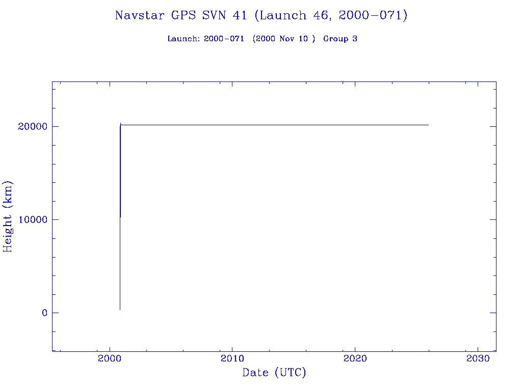 | Navstar GPS SVN 41 (Launch 46, 2000-071) | 1 | 0 | 0 | 0 | 0 | 1 | 1 | 0 | 0 |  |  |  |