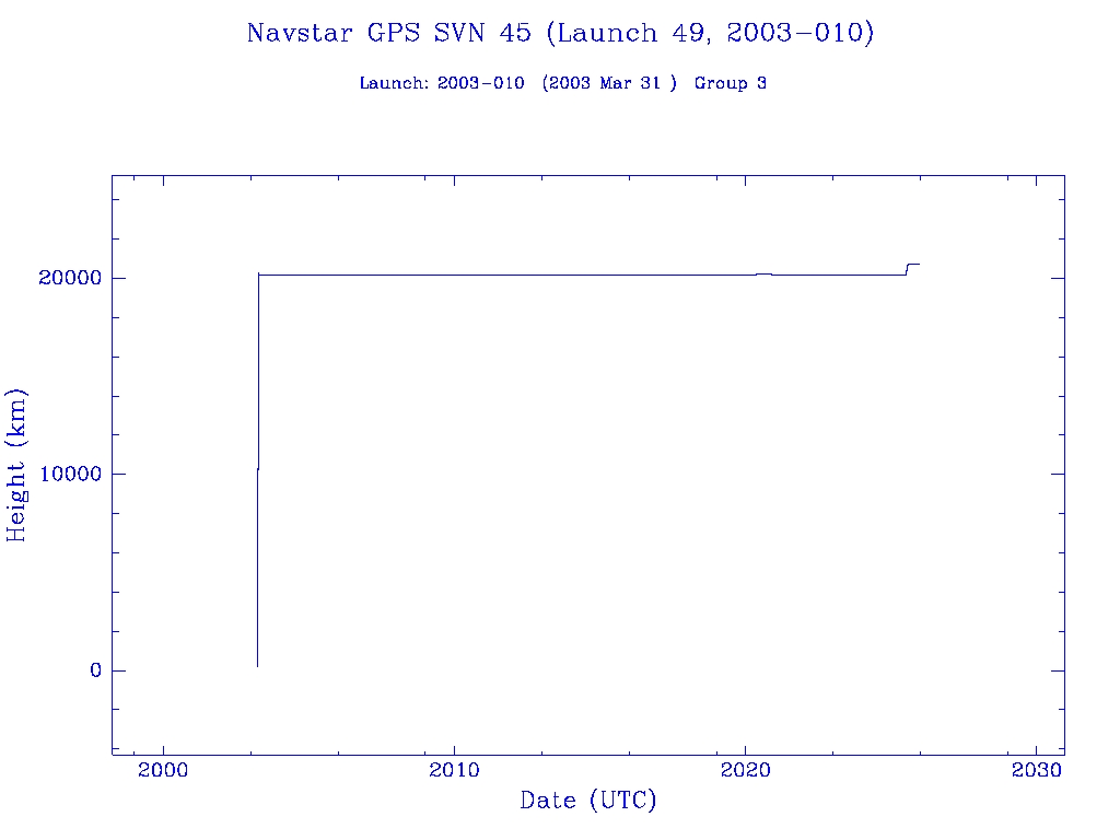 | Navstar GPS SVN 45 (Launch 49, 2003-010) | 1 | 0 | 0 | 0 | 0 | 1 | 0 | 1 | 1 |  |  |  |