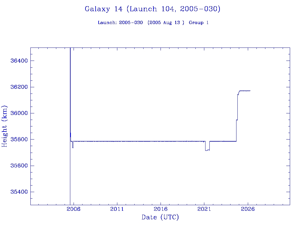 | Galaxy 14 (Launch 104, 2005-030) | 1 | 0 | 0 | 0 | 0 | 0 | 1 | 0 | 0 | 1 | 0 | 0 | 0 | 0 | 0 | 0 | 0 | 0 | 0 |  |  |  |